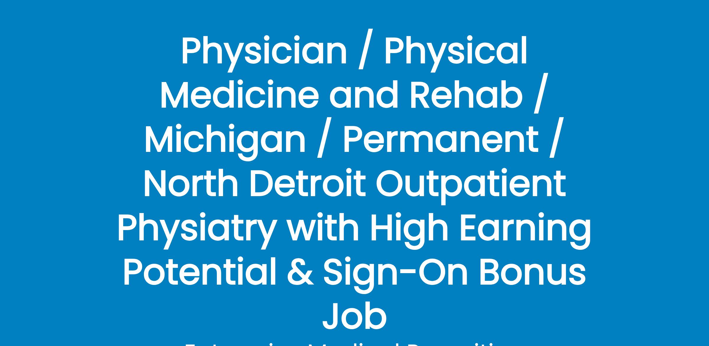 Enterprise Medical Recruiting is assisting a large interdisciplinary Neuroscience group in northern Detroit to recruit a new Physiatrist!This is a long-established group that is looking to grow and expand its service. The incoming will join other PMRs with excellent support staff!