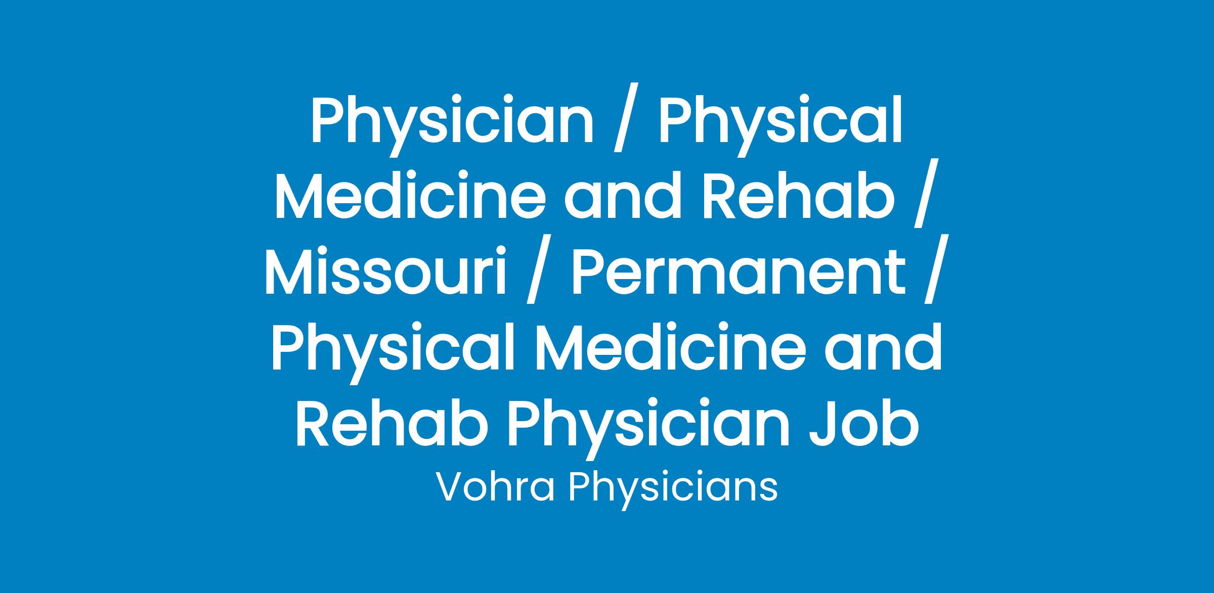 Part-Time Physical Medicine and Rehab Physician Position in Springfield, MO with National Wound Physician Group