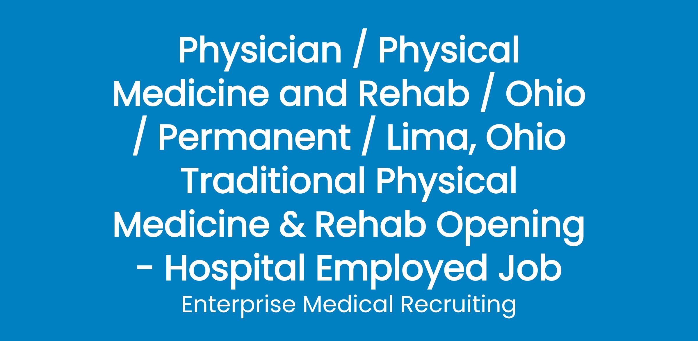 Enterprise Medical Recruiting is assisting a hospital in Lima, Ohio, in recruiting a new Physical Medicine & Rehabilitation!