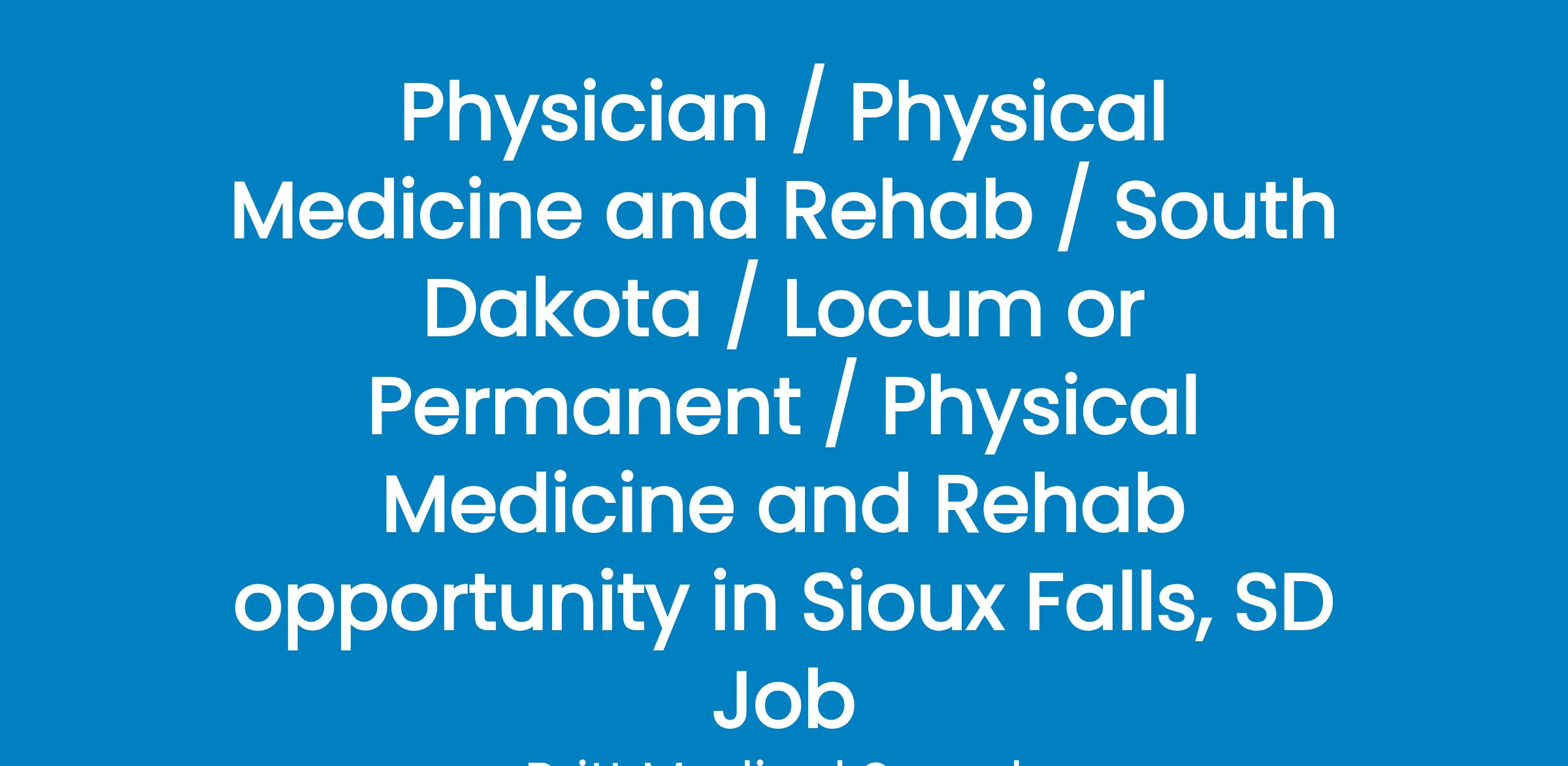 Seeking BC/BE Physical Medicine and Rehabilitation Physicians to join current practice in Sioux Falls, SD.