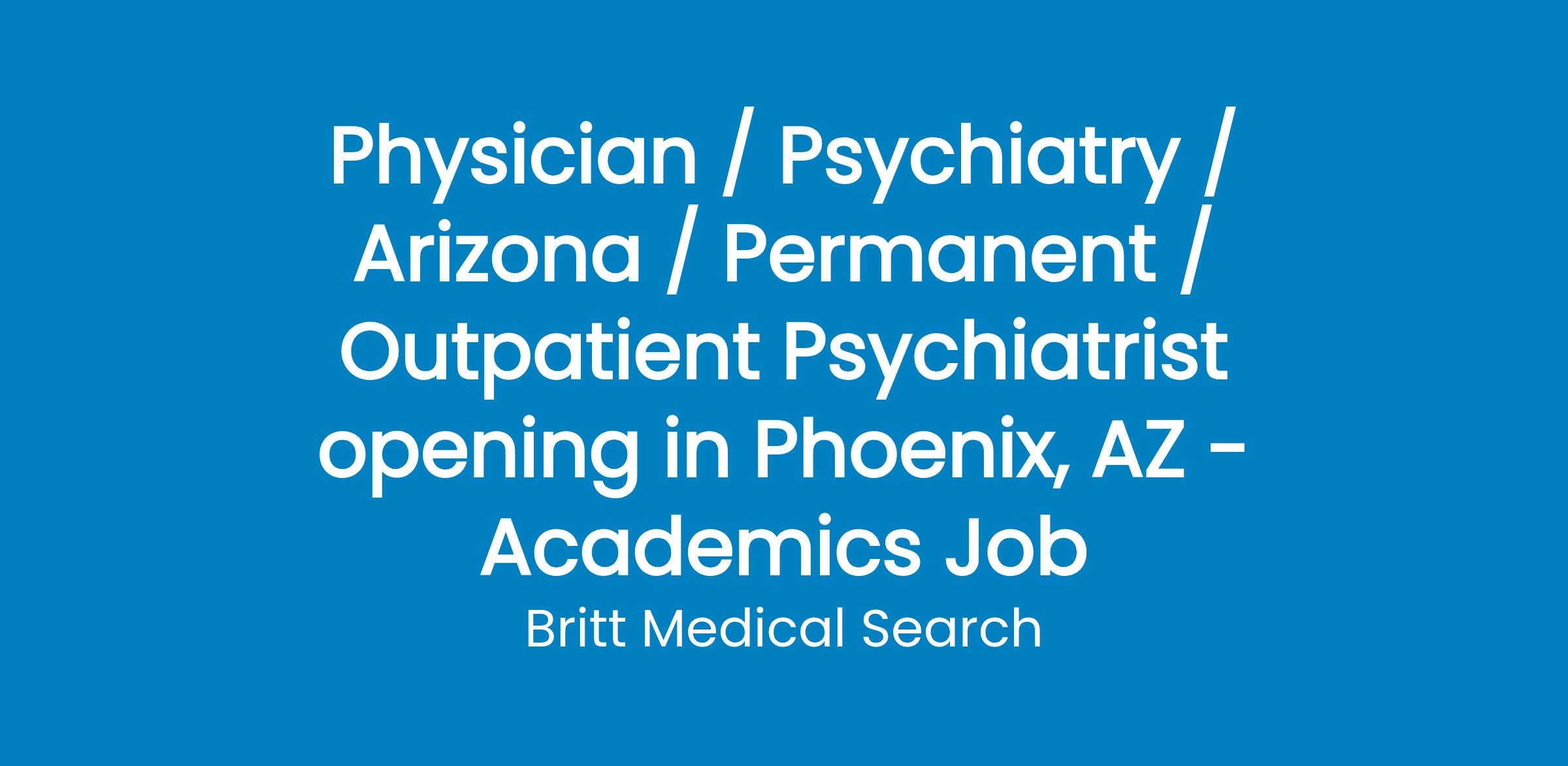 Seeking full-time BC/BE Outpatient Psychiatrist to join a large multi-specialty faculty practice group in the Phoenix, AZ metro area.