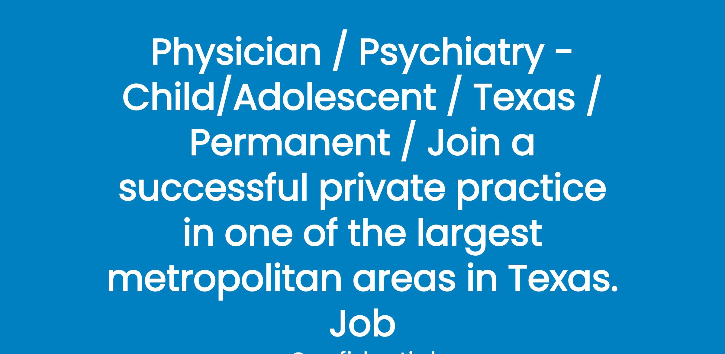 Join one of the largest private mental health practices in the area. Group seeks a Child and Adolescent Psychiatrist to join their thriving practice. This is a 100% outpatient practice opportunity. Drawing from a large referral base, the Psychiatrist's income can exceed $300,000. One of the largest cities in Texas it is a cultural gateway into the American Southwest. With a population of over two million it is home to theme parks, museums and major league sports teams.