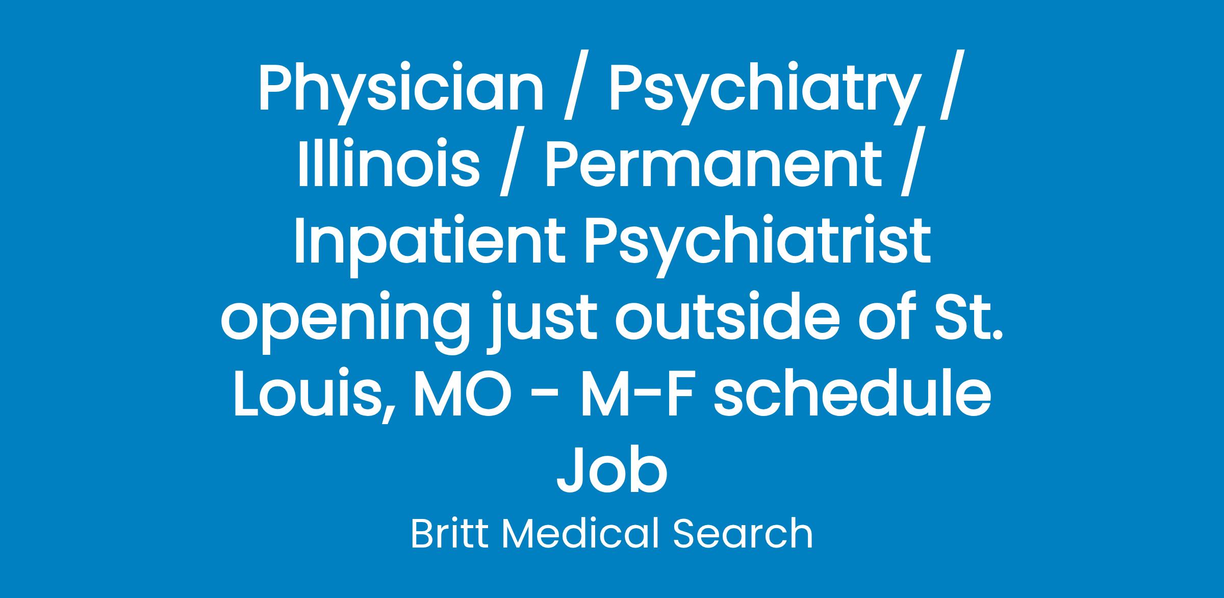 Medical Center (just 10 Miles North of St. Louis, MO) is seeking a BE/BC Psychiatrist to provide full-time services in our Behavioral Health Services Inpatient Unit.