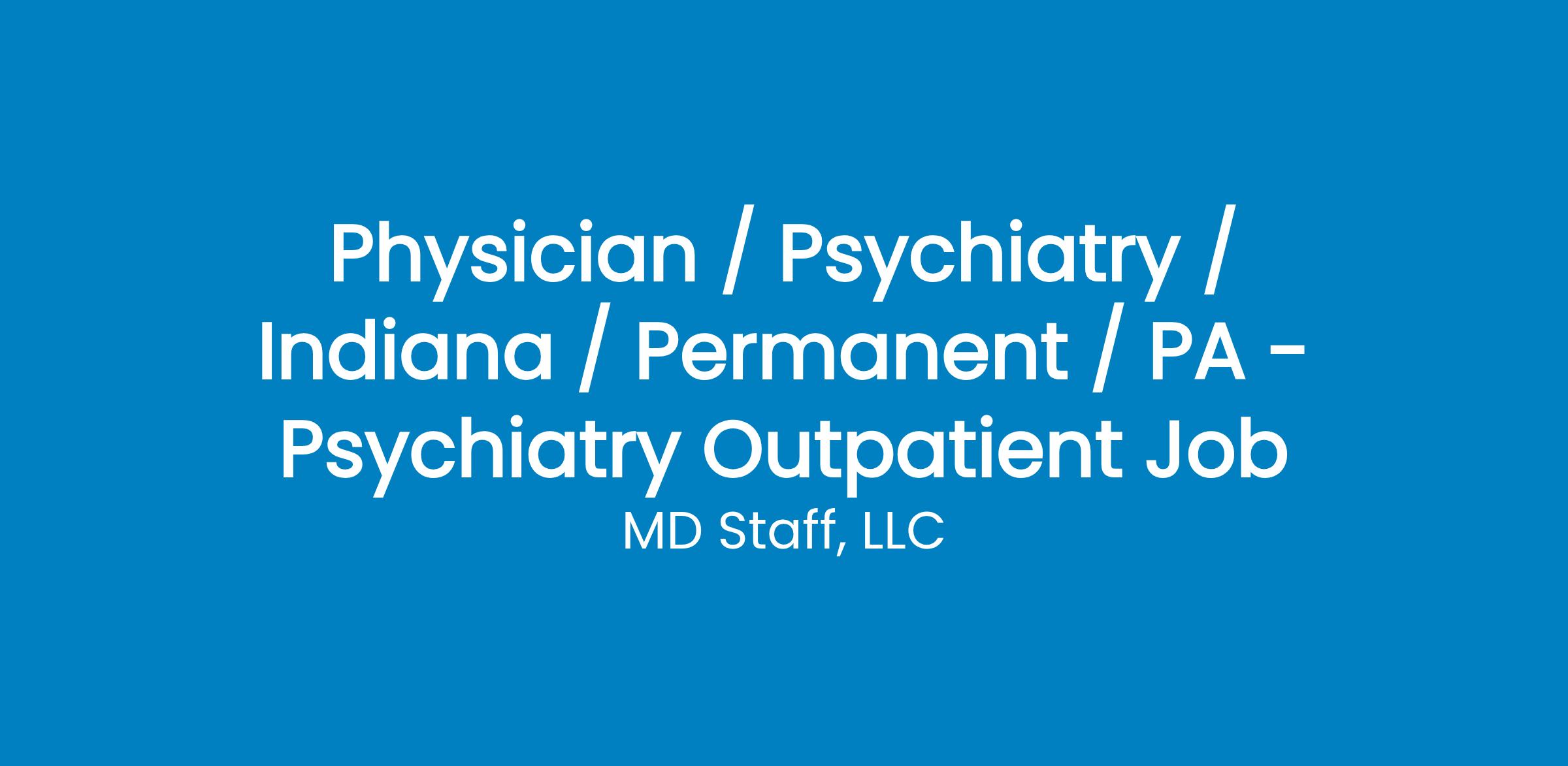 Seeking a Psychiatry - Outpatient Physician Assistant to join a permanent practice in Indiana Clinic hours would be Monday Thursday, 8:00 a.m. 8:00 p.m. Friday, 8:00 a.m. 5 p.m. Provider schedule: 5 days per week including 2 late evenings No weekends or holidays No call expectation Located near Westville, IN If you are interested in hearing more about this opportunity, please call or text HDA at . You can also reach us via email at . Please reference Job ID .
