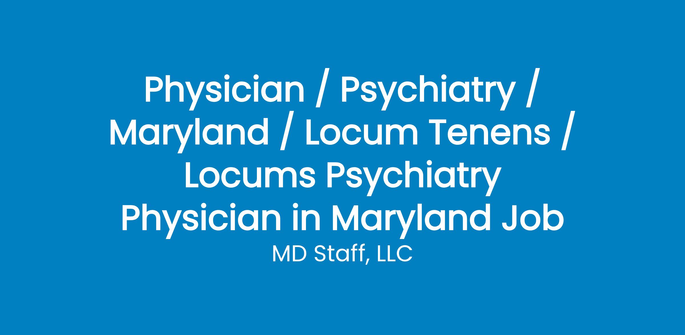 Locum Tenens Psychiatry Position in Maryland Are you a board-certified Psychiatrist seeking a long-term locum tenens opportunity? We have an open position at a reputable healthcare facility located in the heart of Maryland. This assignment spans from December 11, 2023, to July 15, 2024. Details: Specialty: Psychiatry Coverage: Scheduled Clinical Hours Only Practice Setting: Inpatient Admissions Required: Yes Patients Per Shift: 12 Bed in Department: 37 Qualifications: Board Certification in Psychiatry Active license in Maryland Facility Details: EMR System: Epic Stroke Certified: Yes Trauma Level: 1 Scheduling: Dates: December 11, 2023, to July 15, 2024 Shift Type: Regular If you are interested in hearing more about this opportunity, please call or text MD Staff at . You can also reach us through email at . Please reference Job ID .