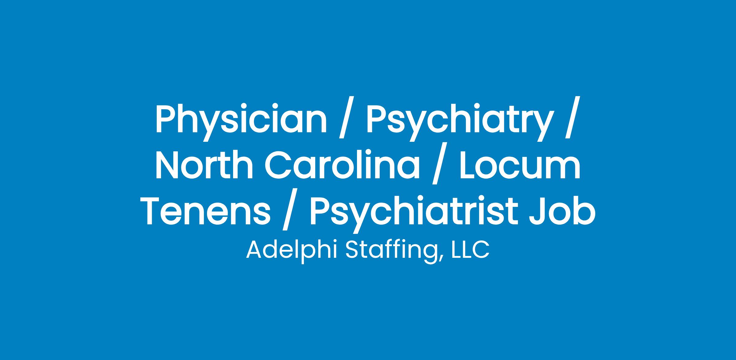 Physician / Psychiatry / North Carolina / Locum Tenens / Psychiatrist Job