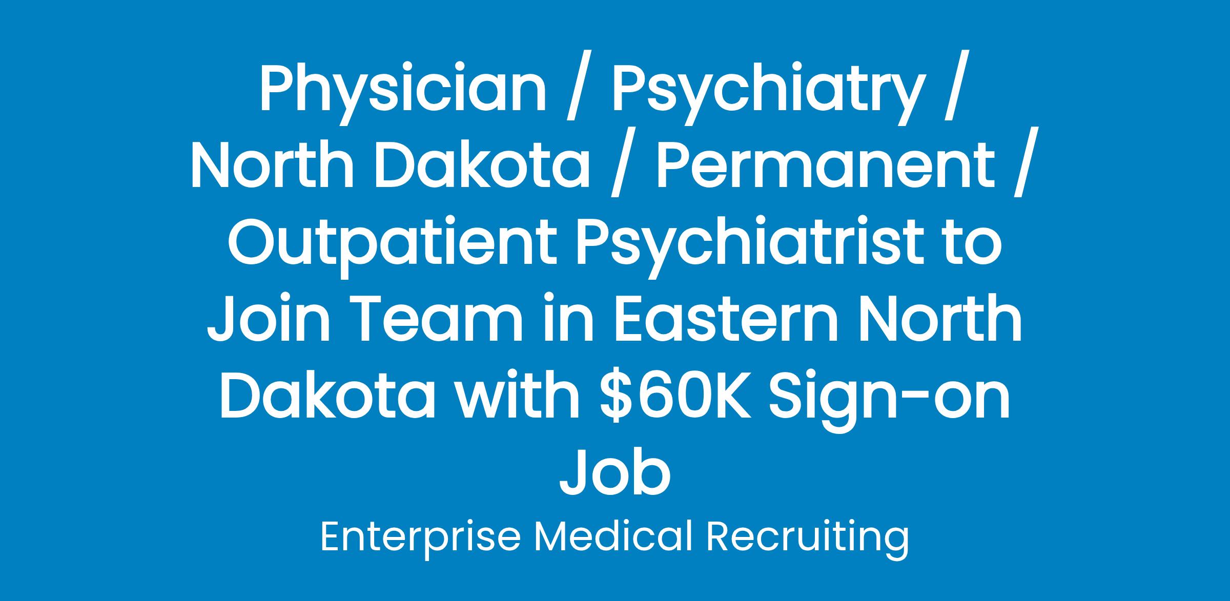 An independent, non-profit healthcare organization in Grand Forks, North Dakota, is hiring a full-time BC/BE Psychiatrist to practice in a newly remodeled space!