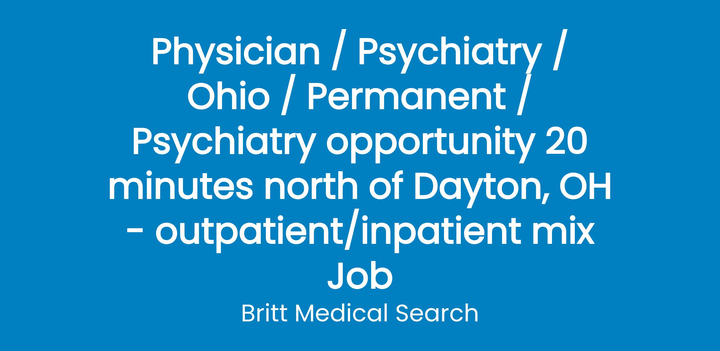 Seeking a BC/BE Psychiatrist to join our team. The psychiatrist will practice combined inpatient for 100% adults and outpatient for 75% adults and 25% children or adult only. This practice supports both child and adult with 70% outpatient and 30% inpatient + call. There are 22 inpatient beds for adults with the length of stay being 3-5 days in a separate building on campus.