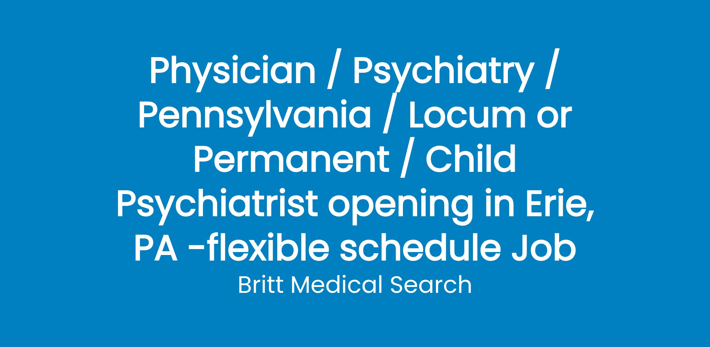 Seeking BE/BC Child Psychiatrist to join team in Erie, PA.