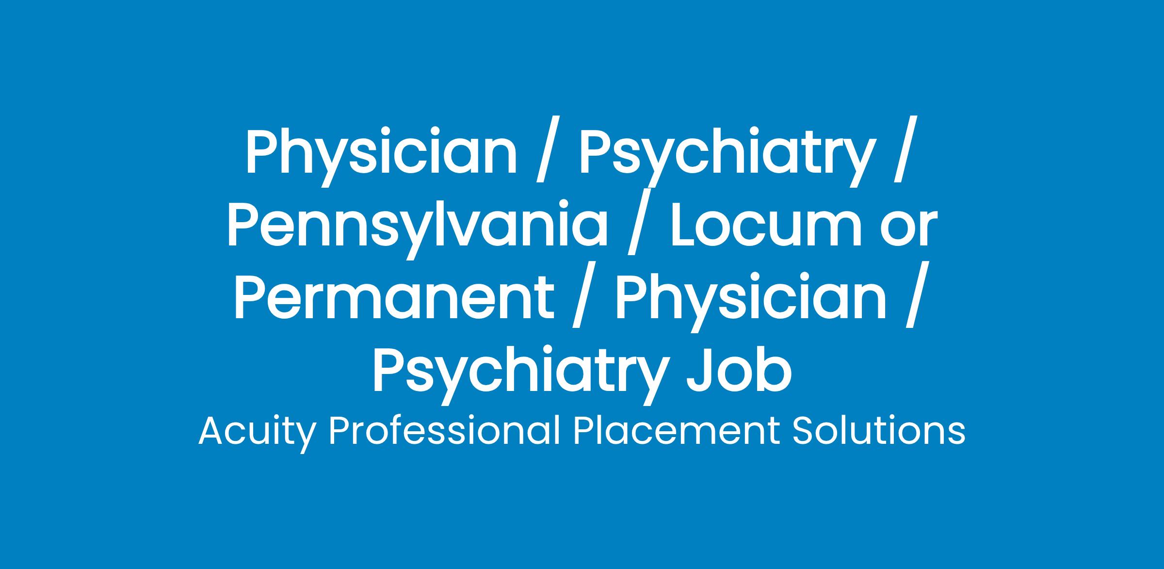 The post Physician / Psychiatry appeared first on Acuity Healthcare .
