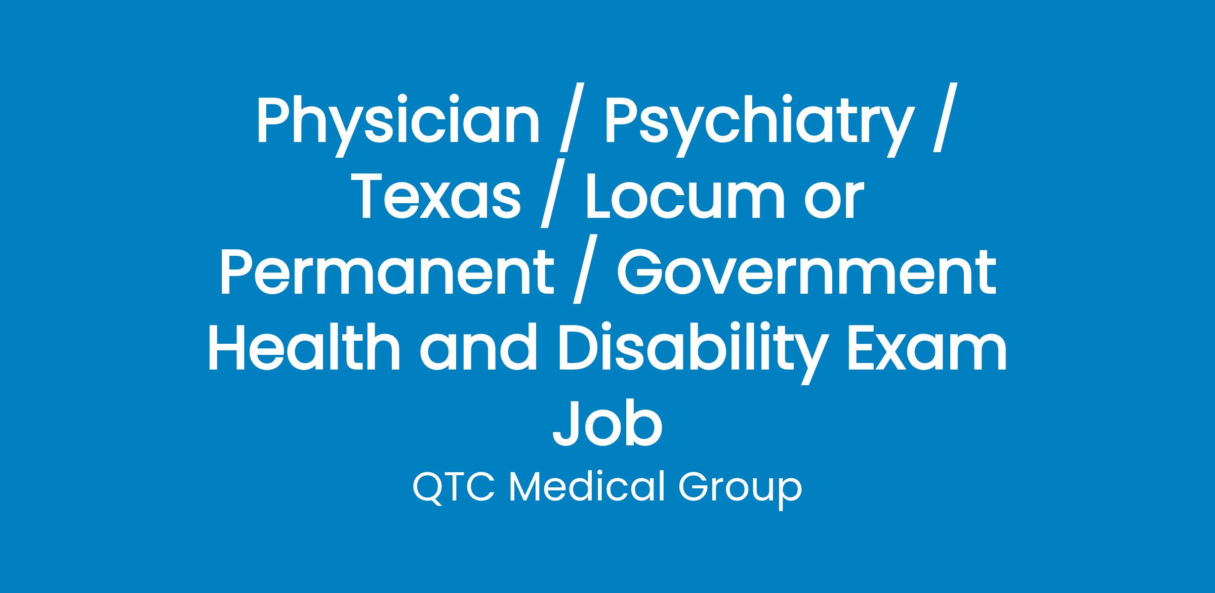 Physician / Psychiatry / Texas / Locum or Permanent / Government Health and Disability Exam Job