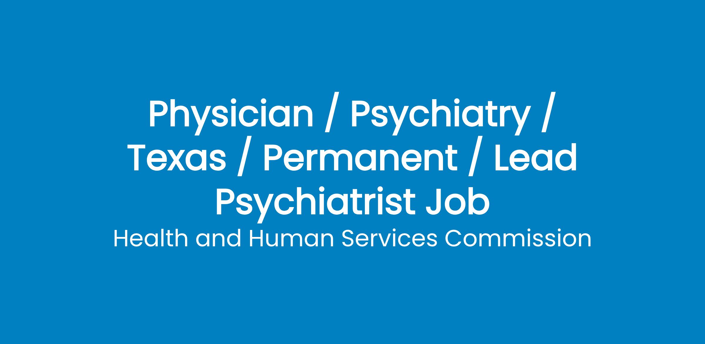 The Mexia State Supported Living Center (SSLC) is seeking a Lead Psychiatrist to join an interdisciplinary team of professionals to provide clinical care to residents of the SSLC. As an SSLC enter clinical position , you will work at the SSLC campus with a dynamic group of staff and professionals who are dedicated to providing supports and services for individuals with intellectual and developmental disabilities. This is a team environment where staff clinicians collaborate to provide comprehensive care and services. To learn more about the SSLCs, see most important characteristic about SSLC employees is that we truly value and respect those we serve and believe in the mission that all people can achieve a higher level of wellness and independence. Our vision statement is Individuals served at State Supported Living Centers will experience the highest quality of life, supported through a comprehensive array of services designed to maximize well-being, dignity, and respect.The state of Texas offers many benefits to employees, including competitive salaries, career advancement, health and dental insurance, and paid vacation and sick leave.The Lead Psychiatrist performs highly advanced psychiatric work under direct supervision of the SSLC Medical Director. Directs, oversees, and/or conducts the examination and diagnoses of patients, and administers psychiatric treatment and medication as needed. Administers specialized psychiatric treatments and/or procedures. Directs staff and provides leadership to ensure optimal quality psychiatric treatment services for the individuals entrusted to the care of the SSLC. Monitors trends and activities, prepares reports, and makes recommendations for operational and services improvement as appropriate. Serves as an active member of the patients Interdisciplinary Team (IDT) and provides guidance to treatment team members regarding the treatment of the patients under their care. Reviews patient records and files in conjunction with the IDT to determine the progress, effectiveness, and appropriateness of treatment services offered. Plans, assigns, and/or supervises the work of others, including other Psychiatrists. Participates in Peer Review Committees for performance improvement as appropriate. Participate in or directs, as requested, any other clinically related committee that is formed for the SSLCs to recommend guidelines and standards of care in response to changes in research literature, regulatory environment, or public health as requested by the facility Medical Director or state office Medical Services Coordinator. Serves on assigned committees as required. Works under minimal supervision with extensive latitude for the use of initiative and independent judgment.