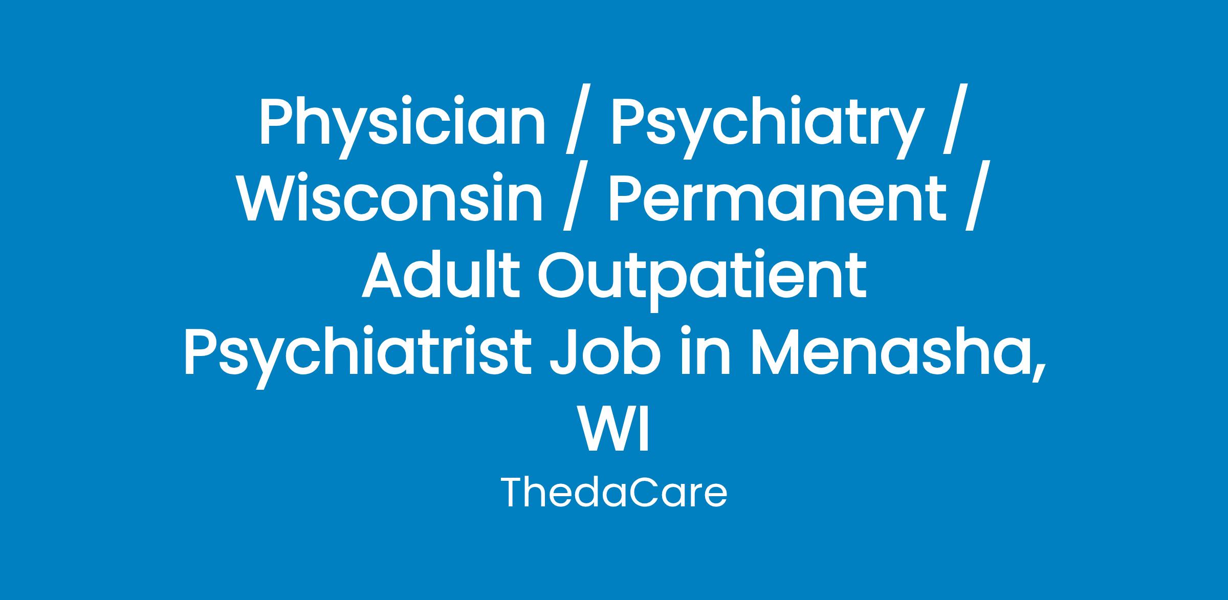 ThedaCare Behavioral Health provides mental health and substance use disorder treatment to adults throughout ThedaCare's seven county region. As part of an ongoing effort, ThedaCare wishes to add another outpatient psychiatrist in Menasha, Wisconsin. The outpatient psychiatrists will see new patients, perform evaluations and provide medication checks.