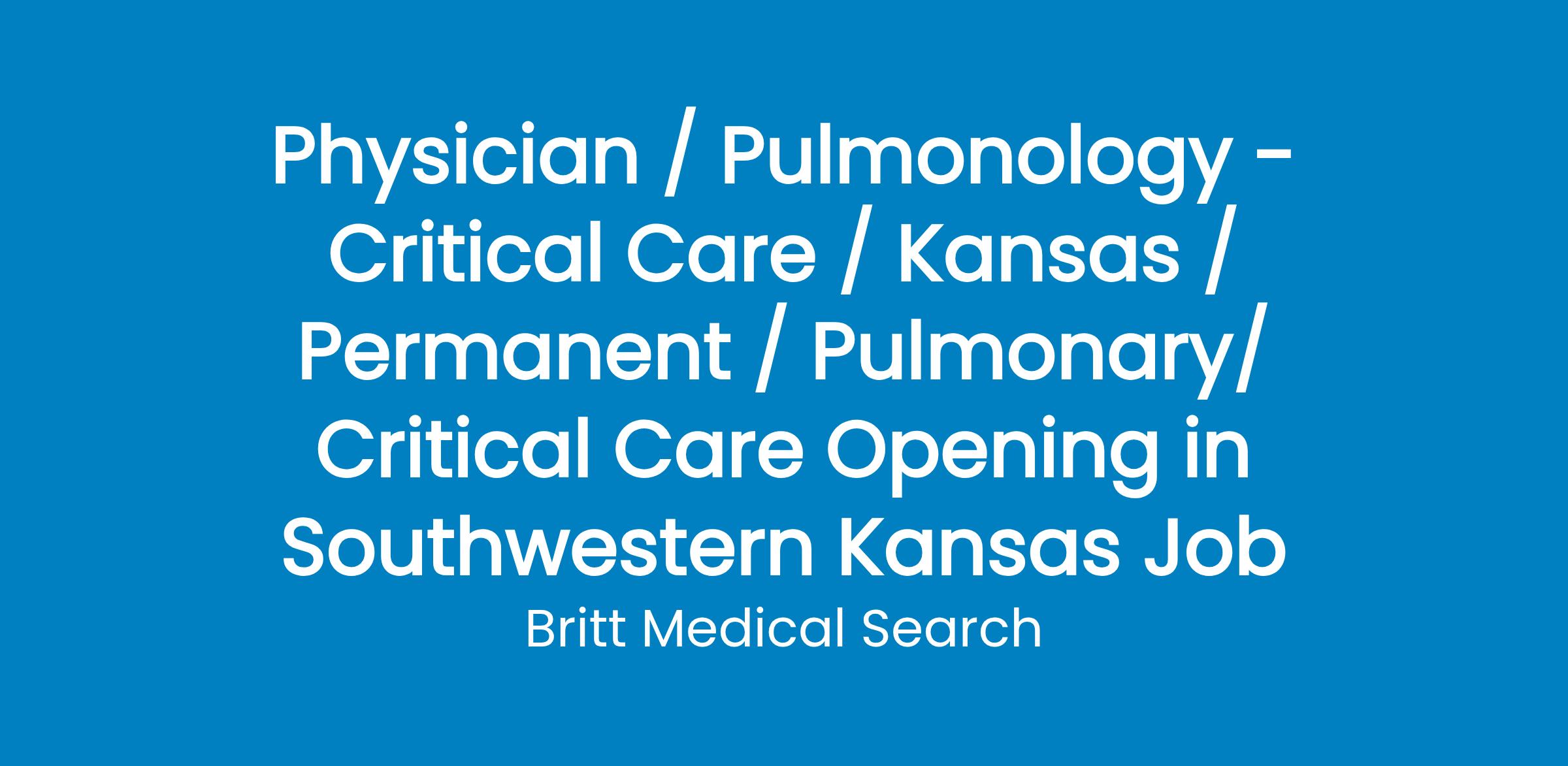 Our facility is searching for a BE/BC Pulmonology/Critical Care physician to join our growing team. This is an employed opportunity with 1:3 shared call. In addition to a rewarding practice, our location offers a great quality of life with both the community and the hospital experiencing exciting growth!