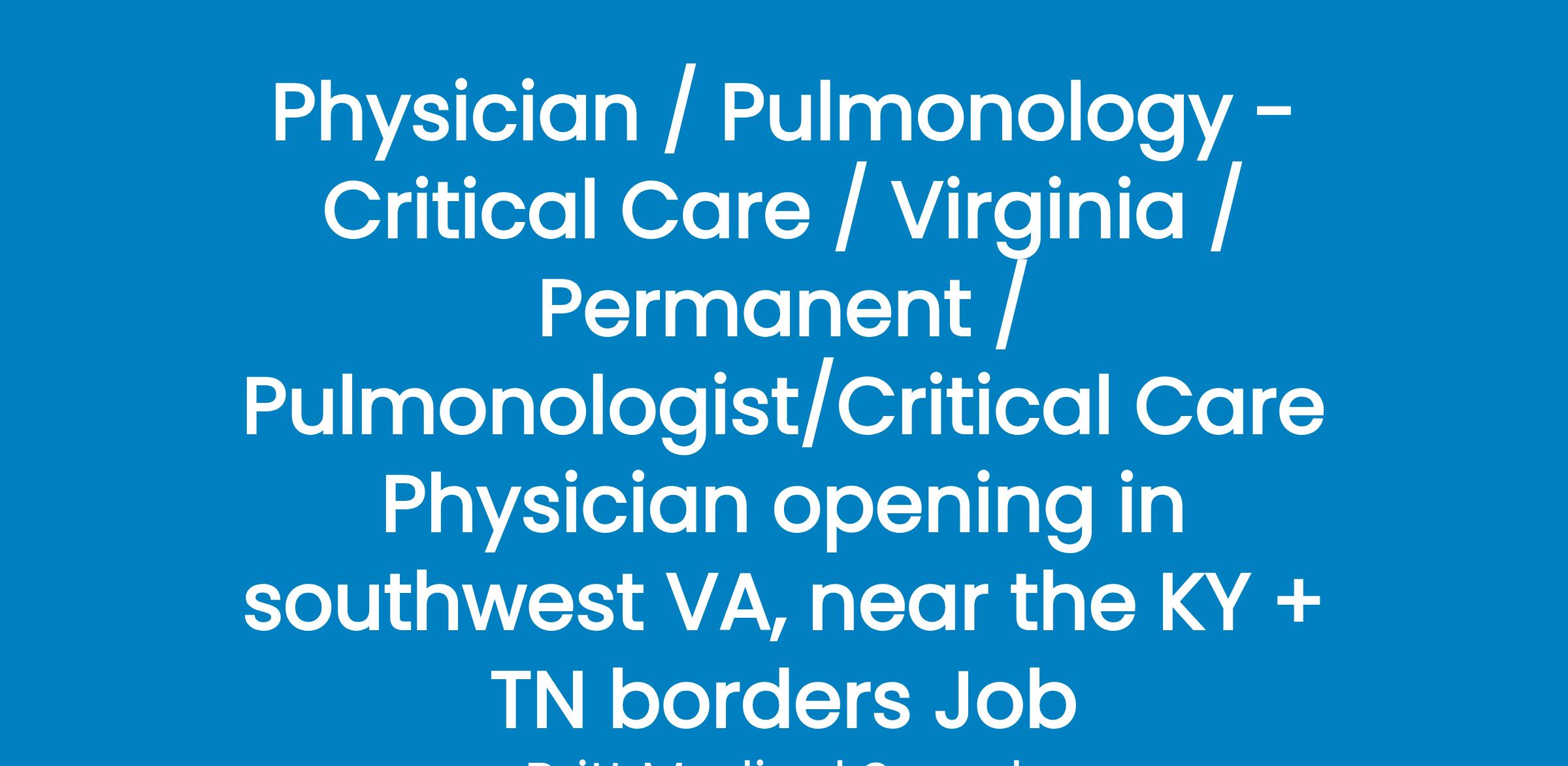 Community hospital is seeking a BC/BE Pulmonologist/Critical Care Physician to join their growing service line!