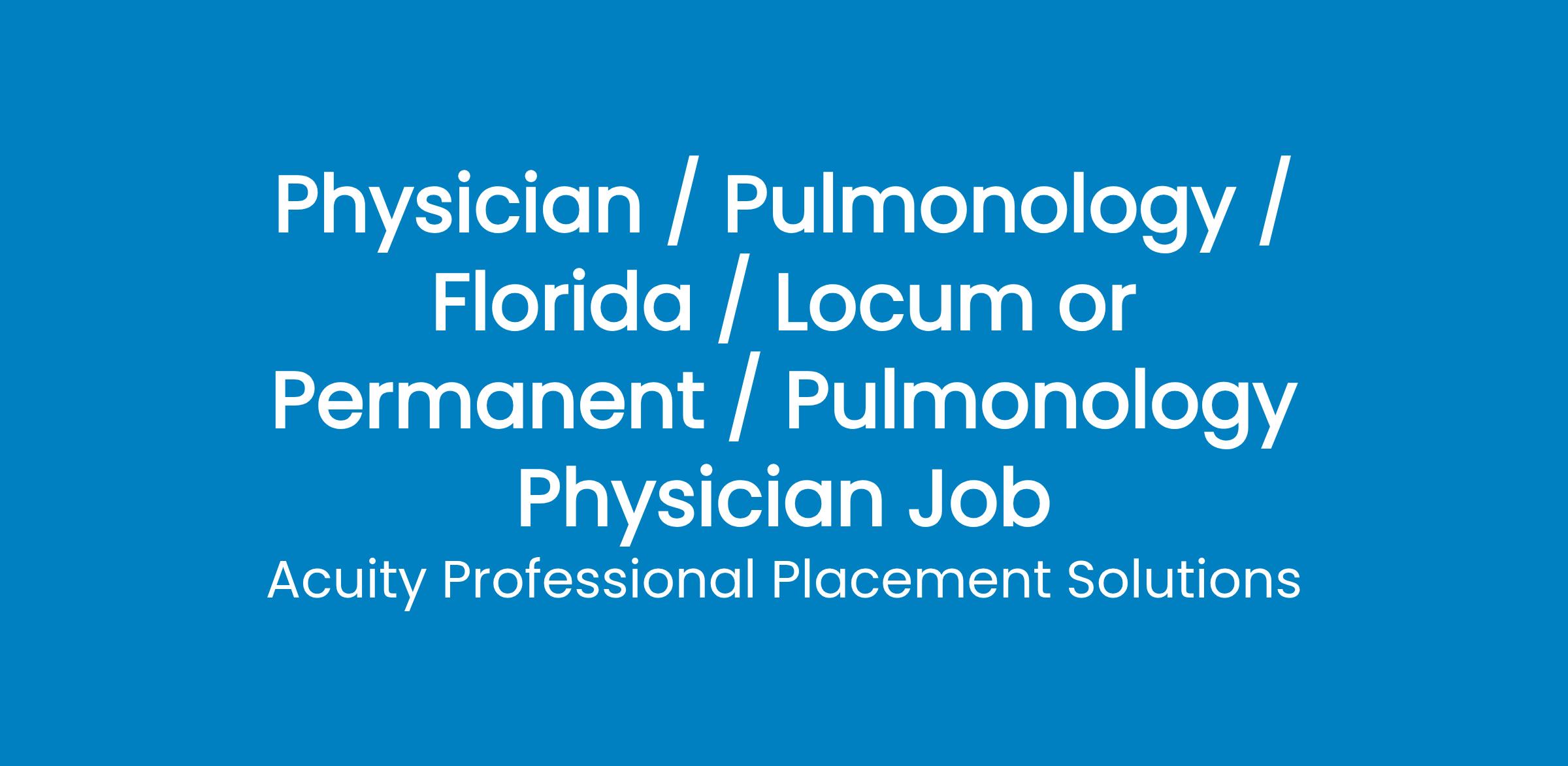 The post Pulmonology Physician appeared first on Acuity Healthcare .