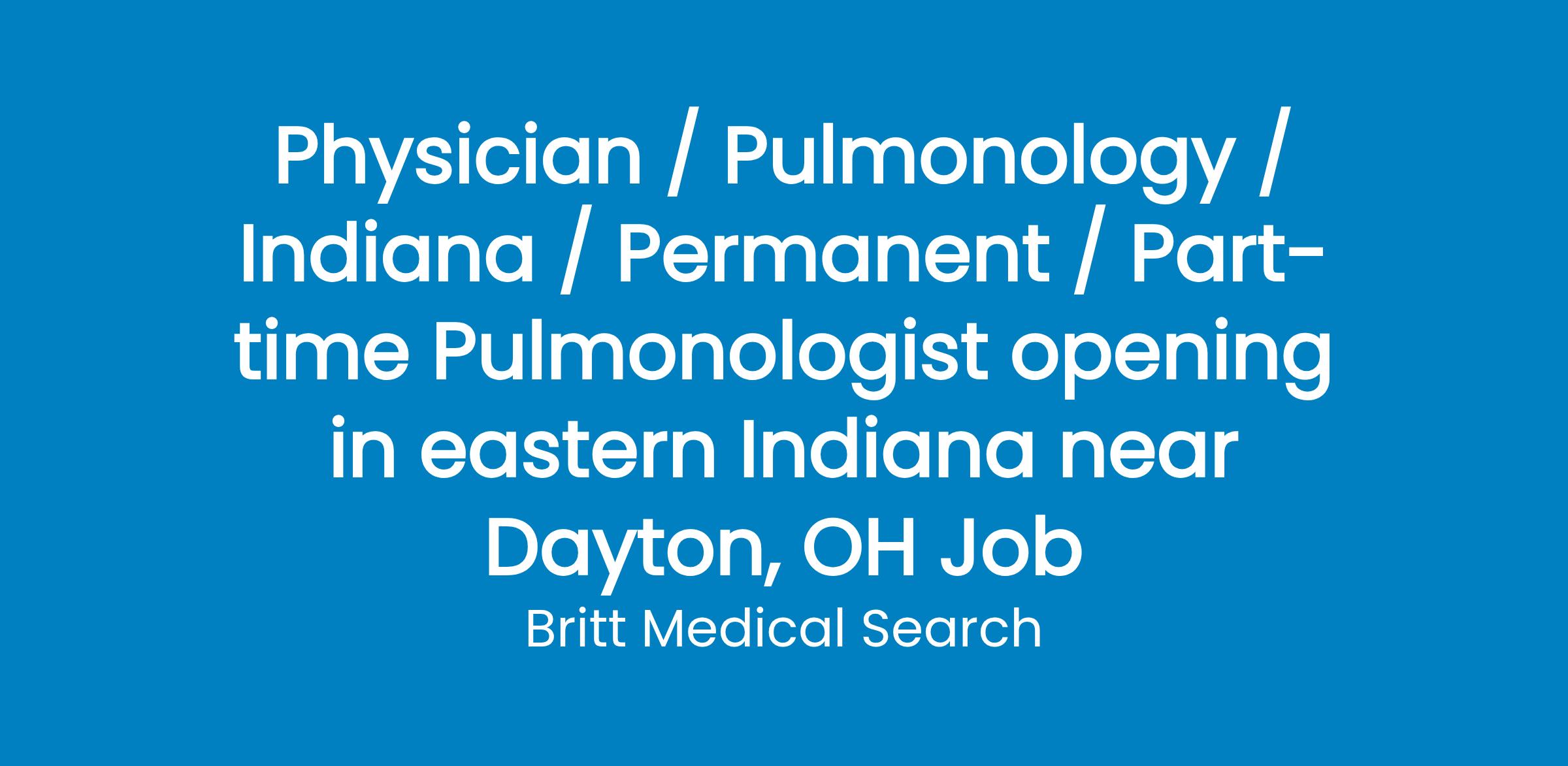 Seeking a patient-centered and empathetic BC/BE Pulmonologist to join our Pulmonary team in eastern Indiana, near Dayton, OH.