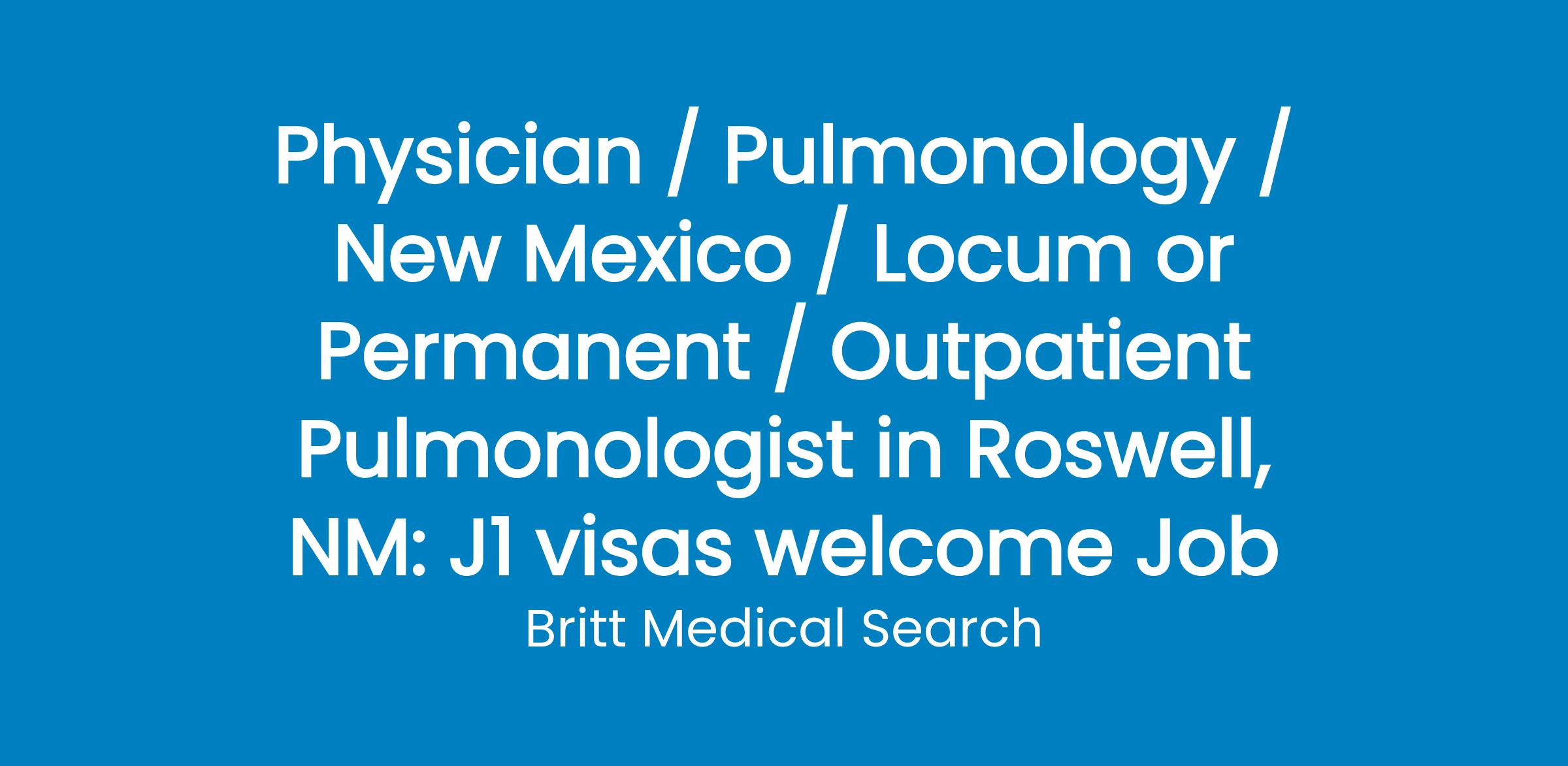 We are seeking a BC/BE Pulmonologist to join our Roswell, NM practice! This is a new specialty to the group so you would have a lot of autonomy in how you develop your practice. The group is open to adding sleep as an option or you can use another sleep center in town if you prefer.