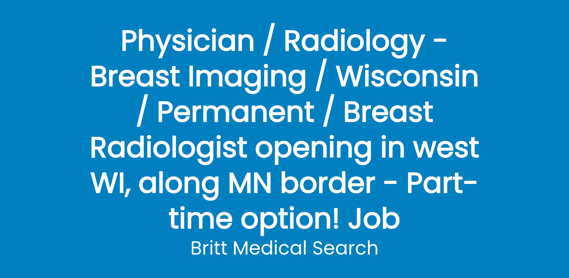 Seeking a BE/BC Breast Radiologist to join our team in western Wisconsin along the Minnesota border!