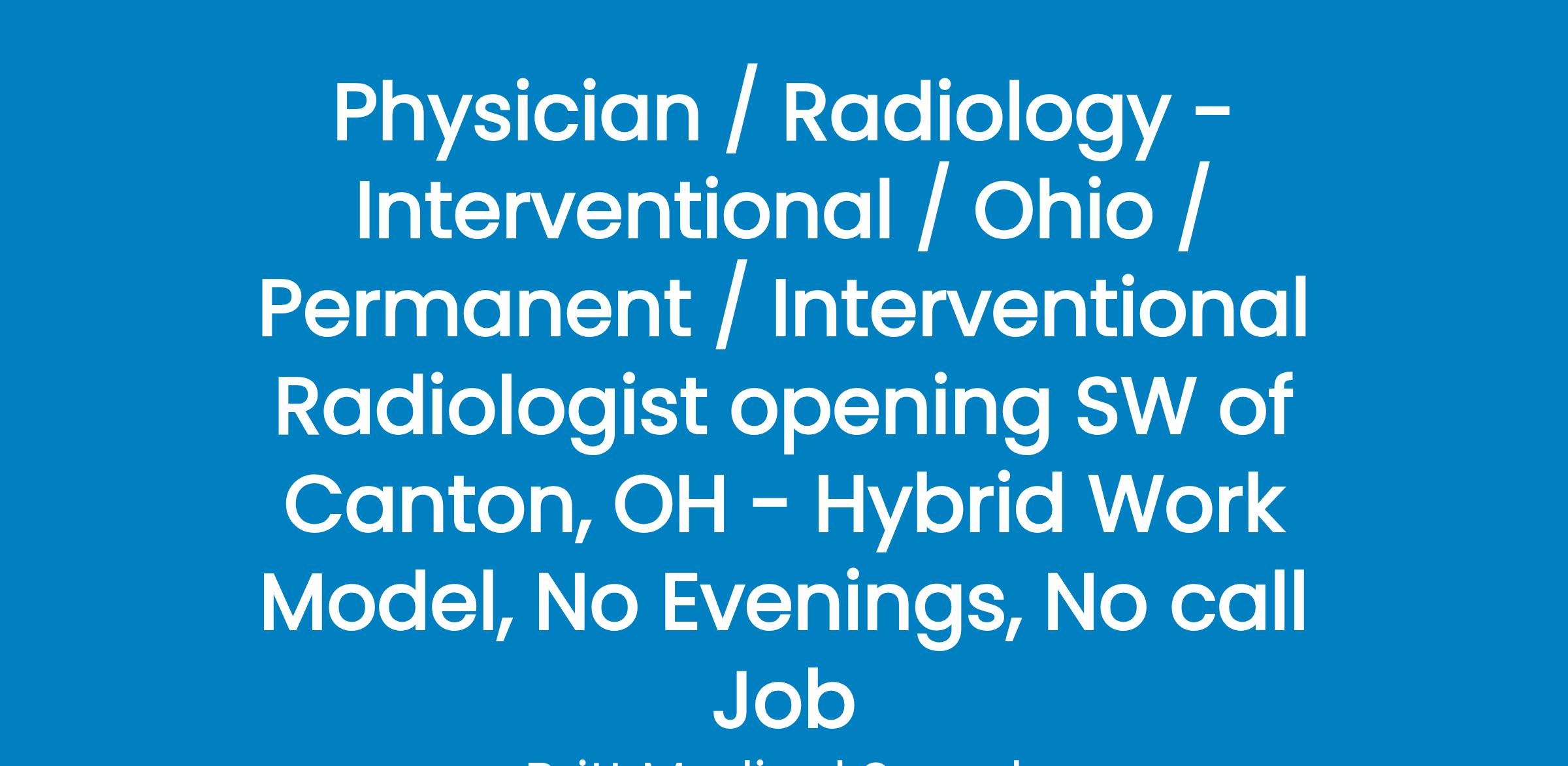 Award-winning, not-for-profit community hospital is seeking a BC/BE Radiologist to join team southwest of Canton, Ohio.