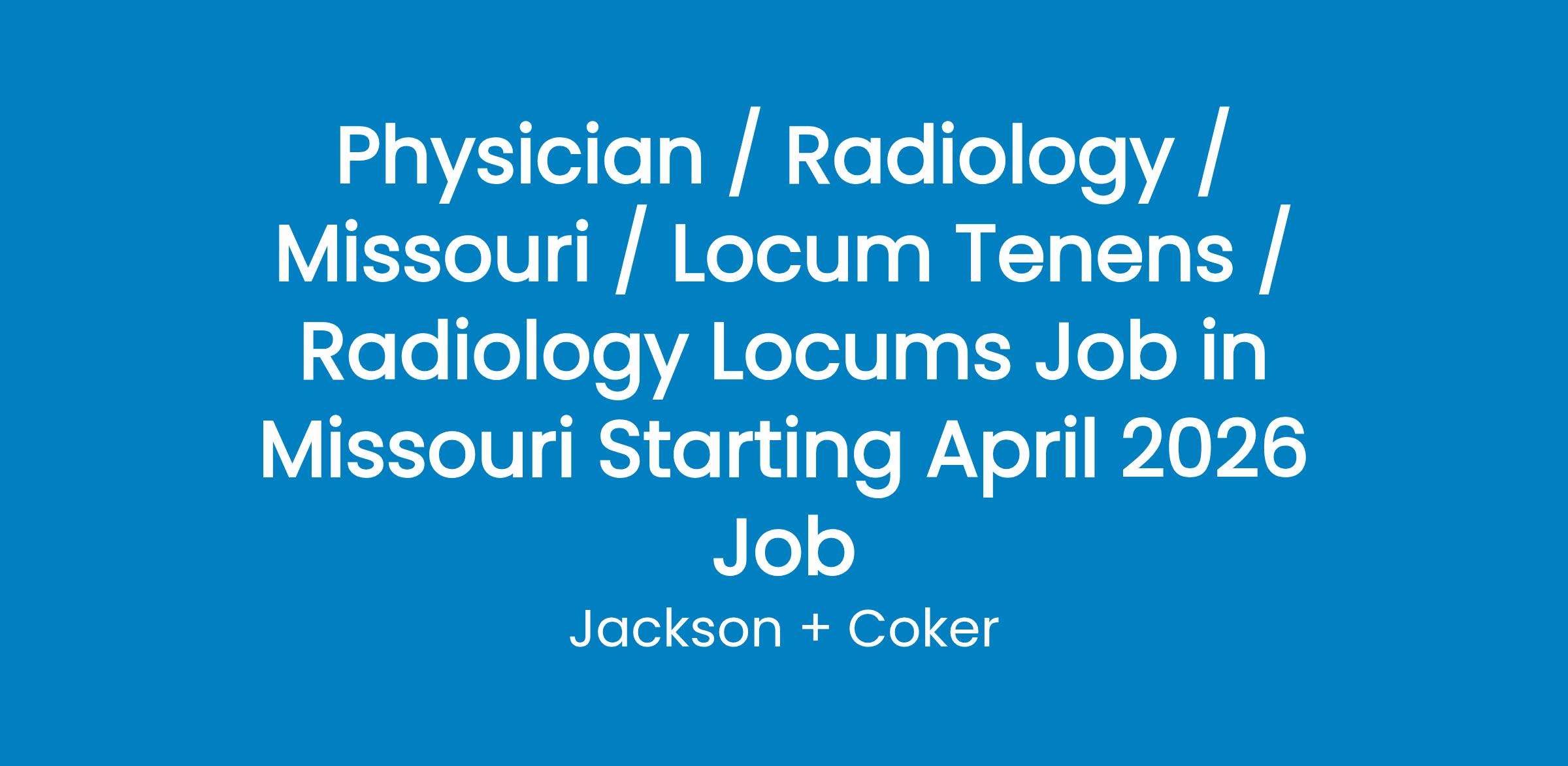 Radiology Locums Job in Missouri Starting April 2026