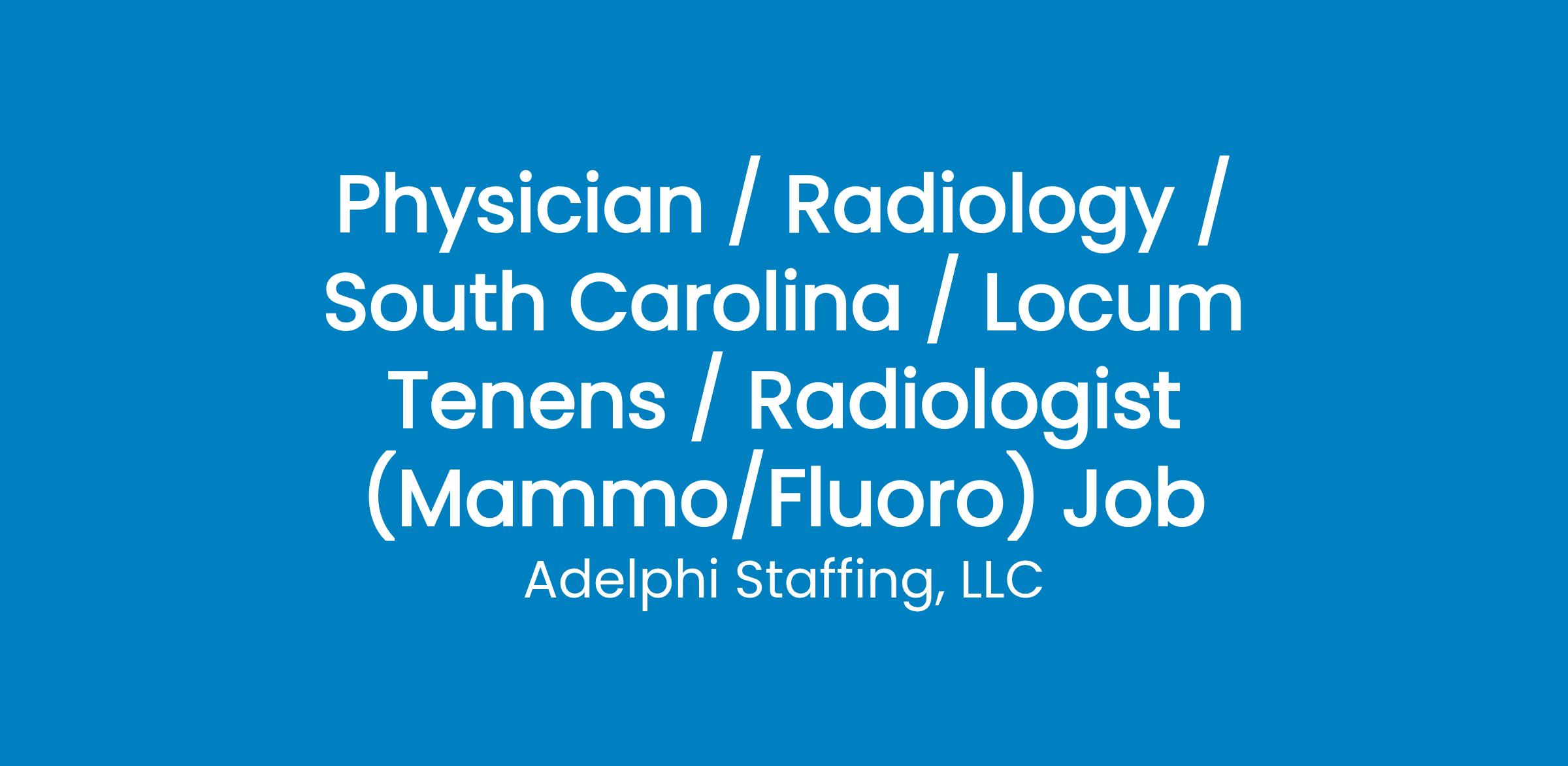 Physician / Radiology / South Carolina / Locum Tenens / Radiologist (Mammo/Fluoro) Job