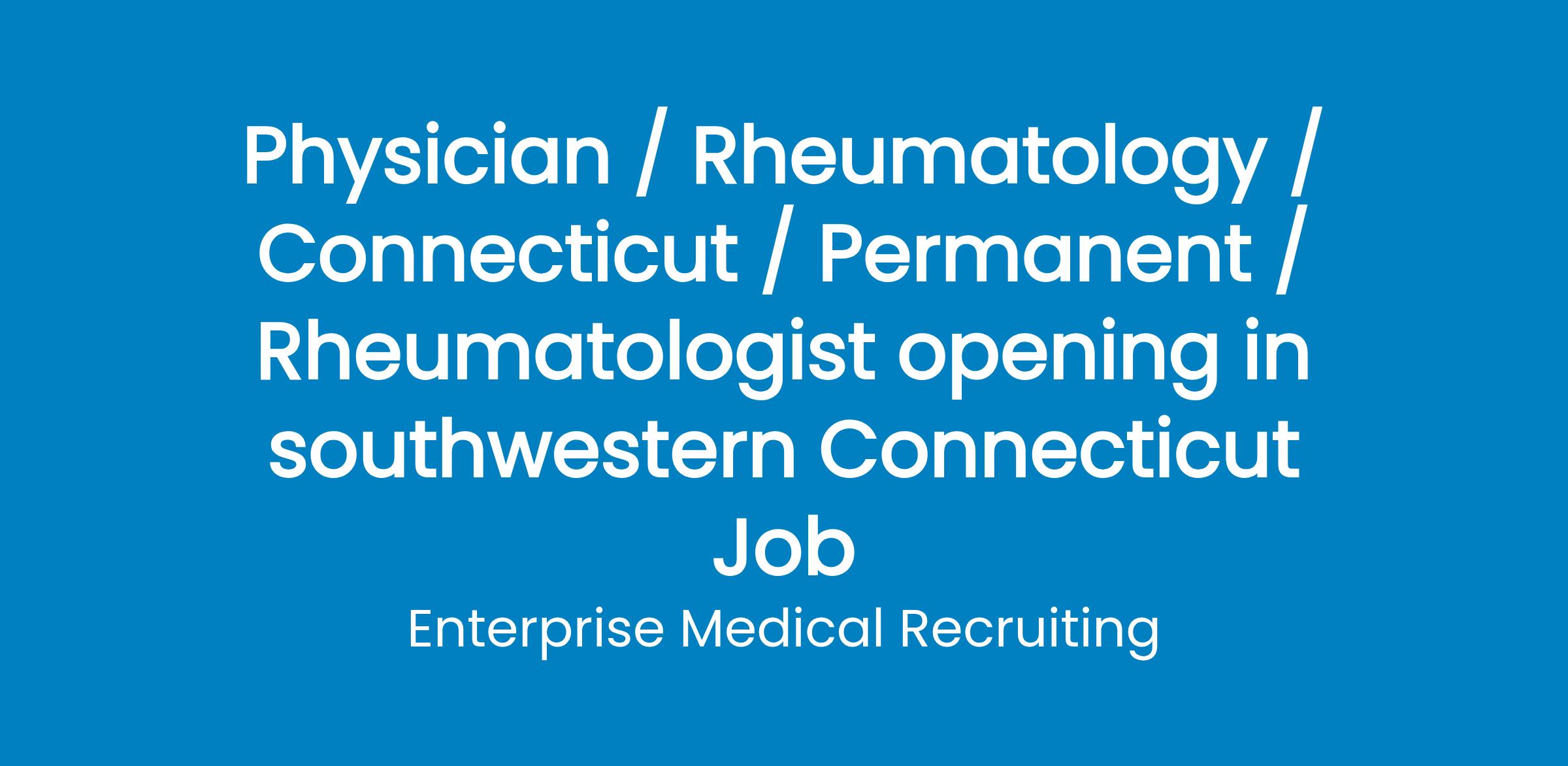 A growing multi-specialty group in southern Connecticut with more than 1000 employed providers is adding a Rheumatologist.