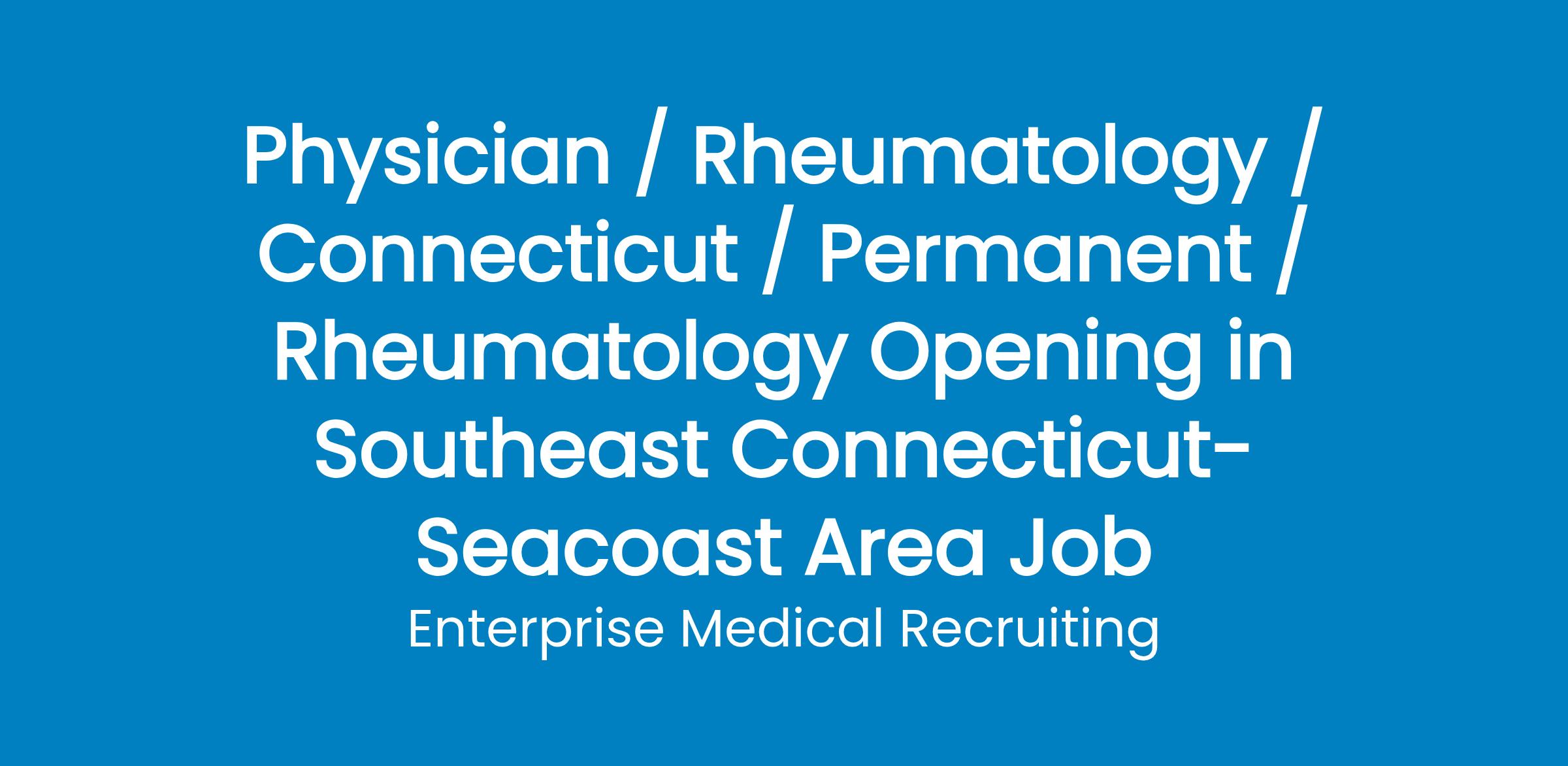 One of the largest healthcare networks in Connecticut is adding a Rheumatologist in the seacoast area. They provide a team-oriented, patient-focused experience in a growing network of 4,000 providers.