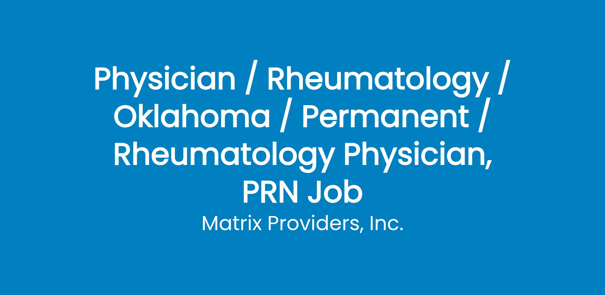 We are hiring for a Rheumatology Physician specializing in level 5 rheumatology consults to join our team in Tulsa, OK to conduct one-time non-treatment Veteran Disability Exams. Benefits: PRN Travel as needed Financial package designed to attract compassionate, top performers The Physician must have the following qualifications: Current and Active License in any State Previous VA or compensation exam experience is a plus, but not required Examinations begin with a review of the Veteran's medical history, which includes an abstract that highlights portions of the history applicable to the Veteran's claim. This material, paired with the Veteran's responses during the exam, will guide you through our web-based examination form. You will love being part of the Matrix family of Providers whose focus since day one has been selflessly giving back to our hard-working and devoted military servicemen and women. Matrix Providers has always been a proud veteran-owned company and military family supporter and is a staunch ally of our active-duty and veteran service providers.