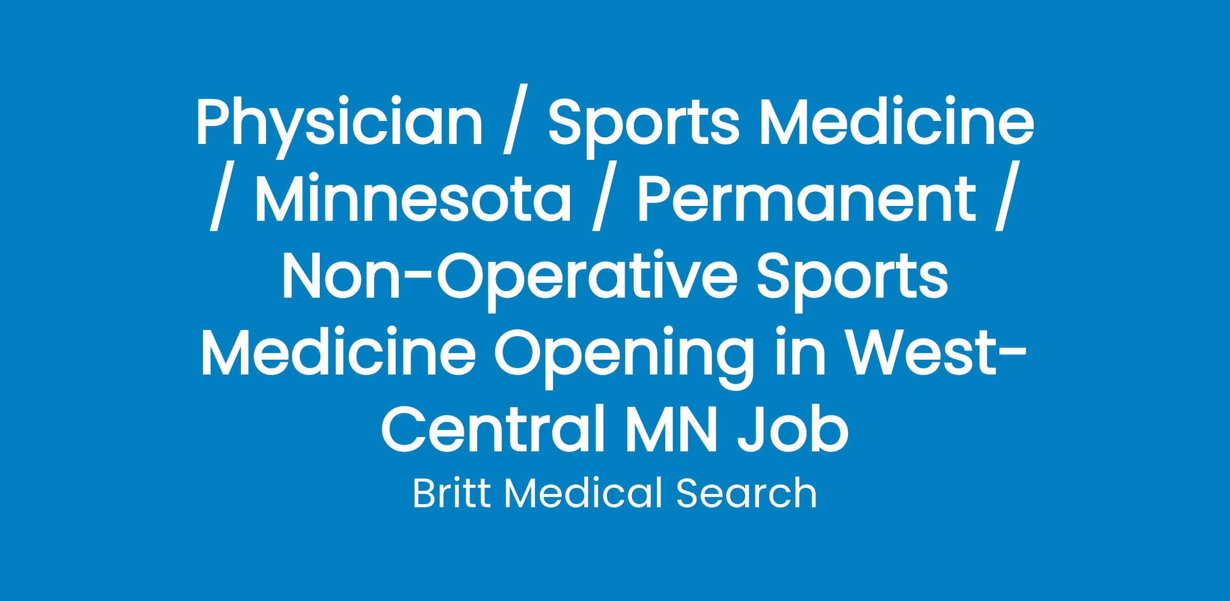 Medical Group is seeking a BE/BC Sports Medicine Physician with a focus on non-operative care to join their dynamic, multidisciplinary team in west central Minnesota.