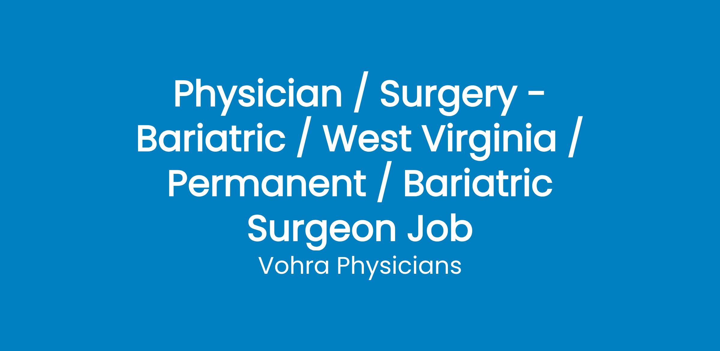 Part-Time Bariatric Surgeon Position in Parkersburg, WV with National Wound Physician Group