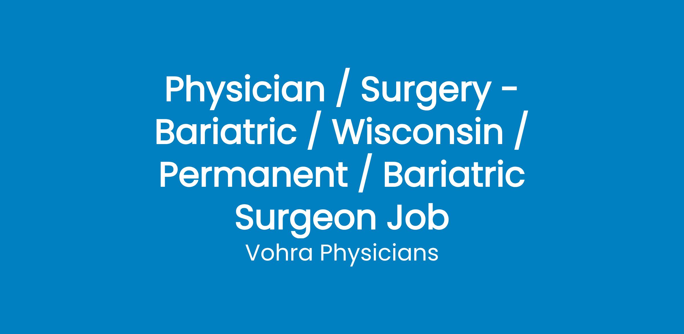 Full-Time Bariatric Surgeon Position in Oshkosh, WI with National Wound Physician Group