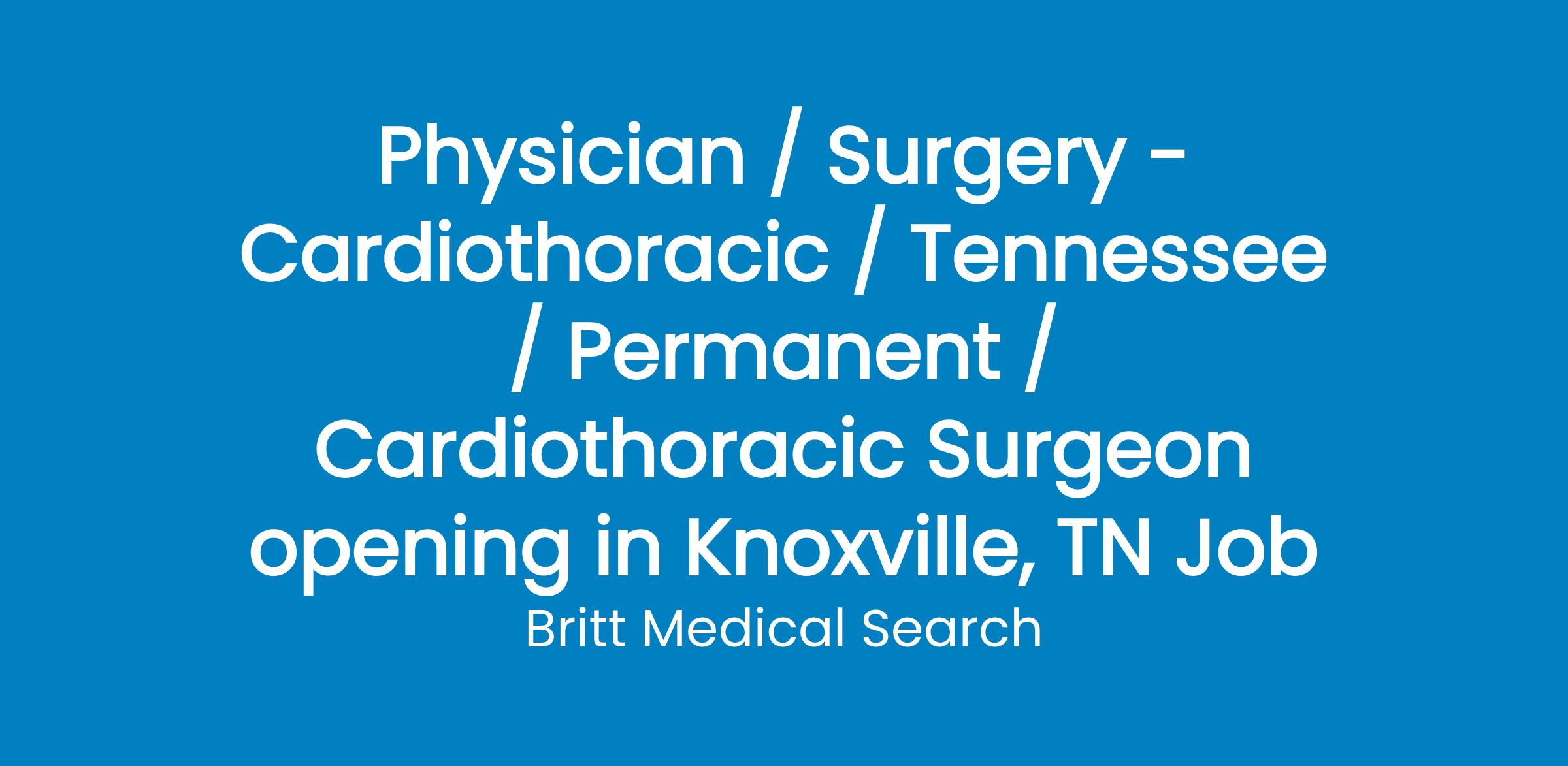 Seeking a BC/BE Cardiothoracic Surgeon to join a well-respected, busy practice to replace a physician.