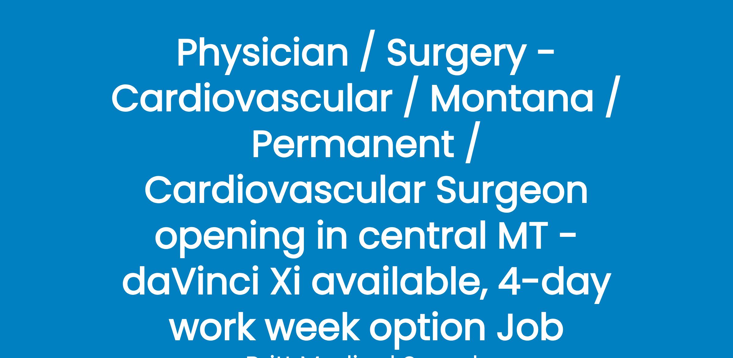 Seeking an experienced BC/BE Cardiovascular Surgeon to join a respected and successful multi-specialty group practice in central Montana!