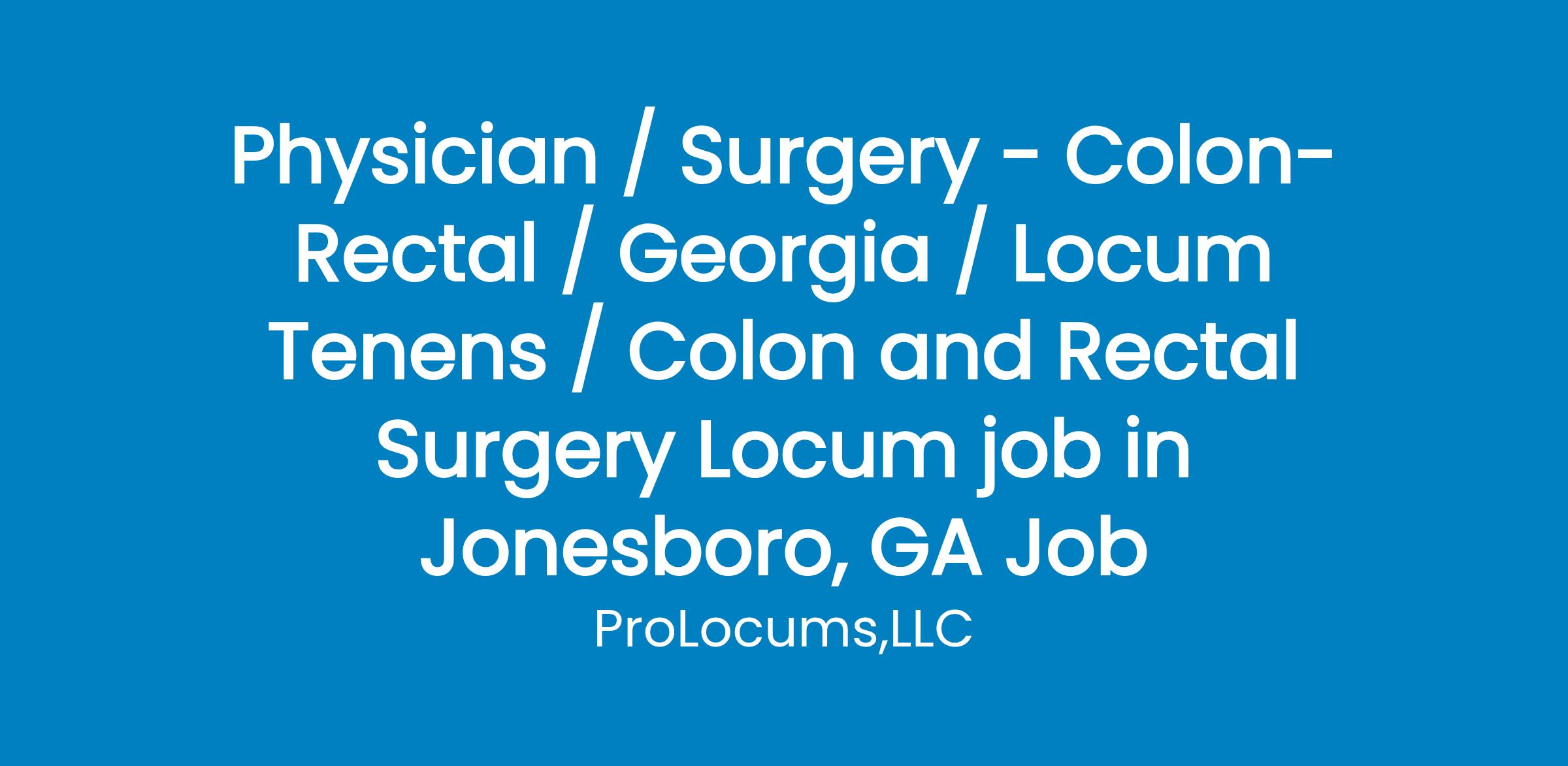 Specialty: Colon and Rectal SurgeryStart date: Nov End date: OngoingCoverage type: No CallSchedule: They would be practicing out of SW.They would need privileges at EUSJ, EUHM, Emory Spivey, AOSC and Emory Dunwoody.Once credentialing receives a CLEAN complete package, please allow 21 days for credentialing to be completed. Epic training is required and cannot be completed until credentialing is complete. All shifts are projected/targeted start times, all contingent on the completion of credentialing. Minimum Board Certification: BEEMR System: Epic