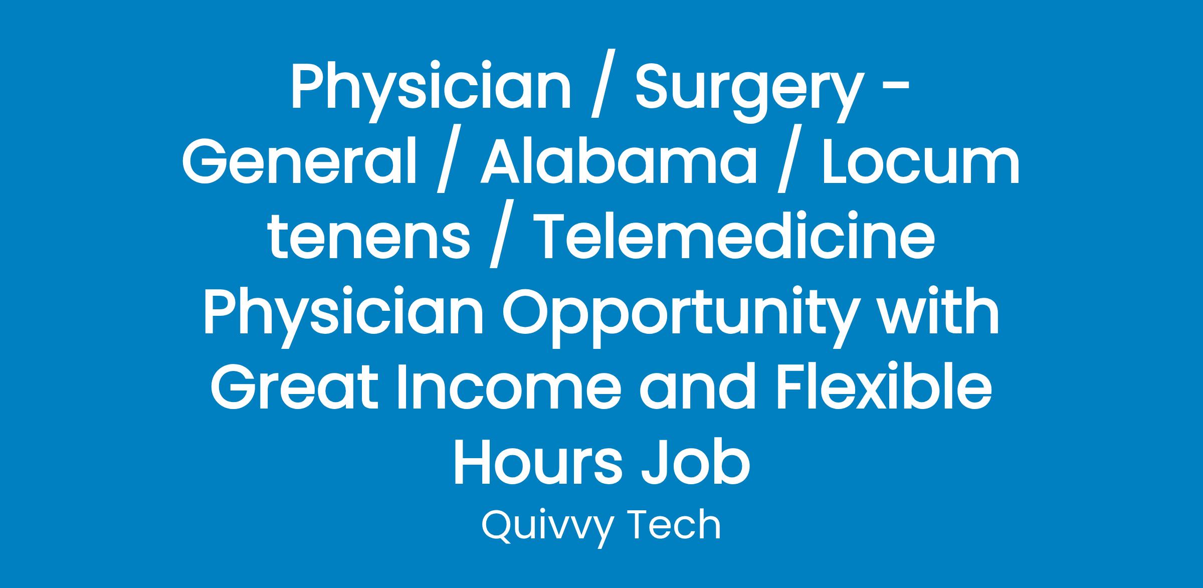 Physician / Surgery - General / Alabama / Locum tenens / Telemedicine Physician Opportunity with Great Income and Flexible Hours Job