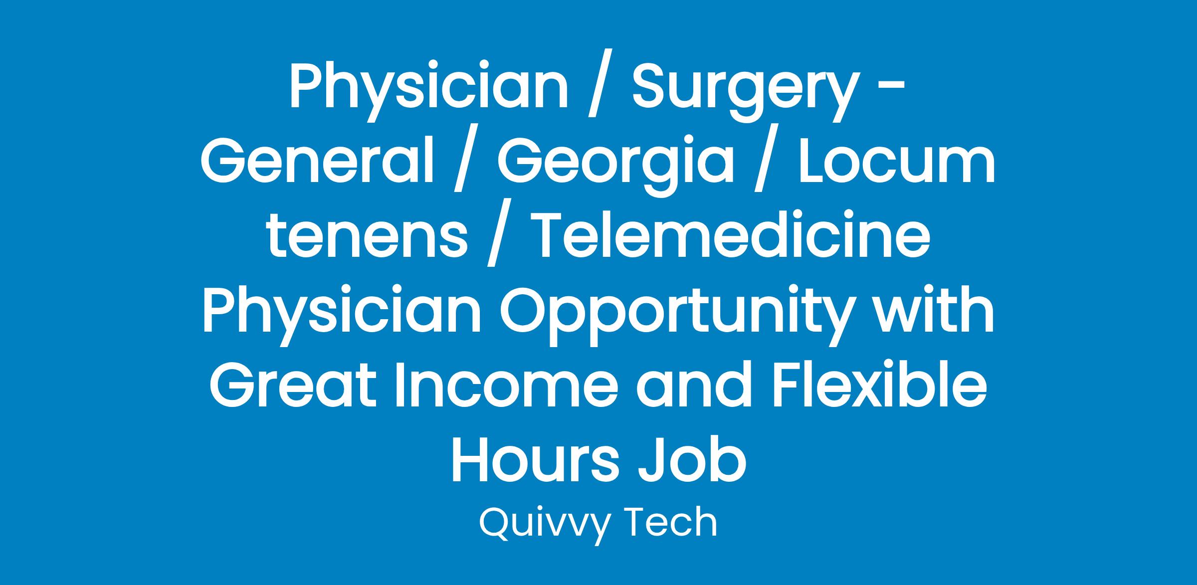 Physician / Surgery - General / Georgia / Locum tenens / Telemedicine Physician Opportunity with Great Income and Flexible Hours Job