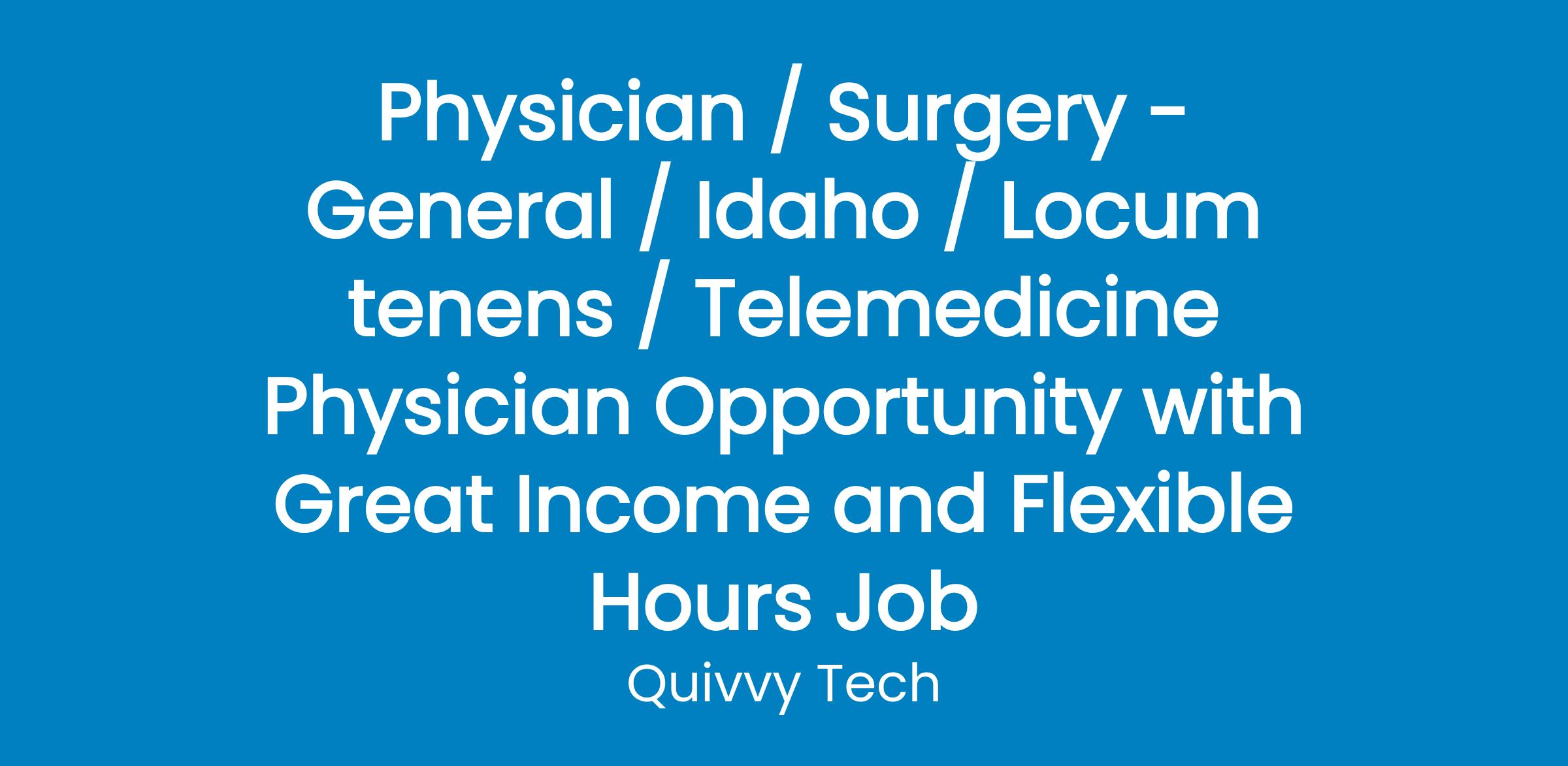 Physician / Surgery - General / Idaho / Locum tenens / Telemedicine Physician Opportunity with Great Income and Flexible Hours Job