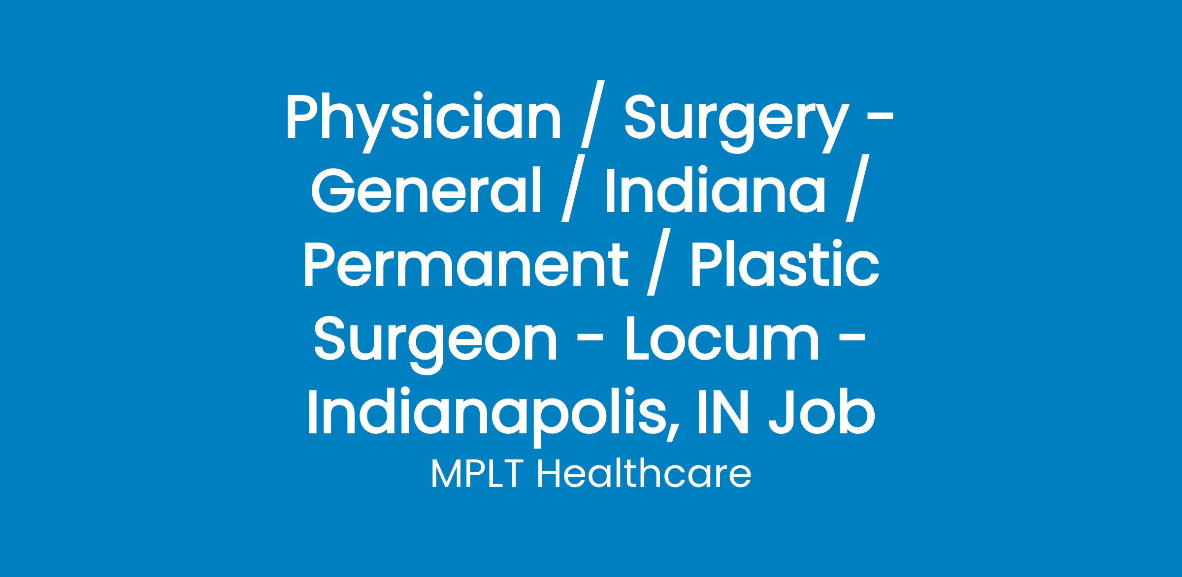 MPLT Healthcare is looking for physicians who Understand the Urgency, Never Give Up, and Have the Courage to Excel in the forever changing medical industry! We have numerous opportunities for an experienced Plastic Surgeon w ith highly competitive pay rates near Indianapolis, Indiana.
