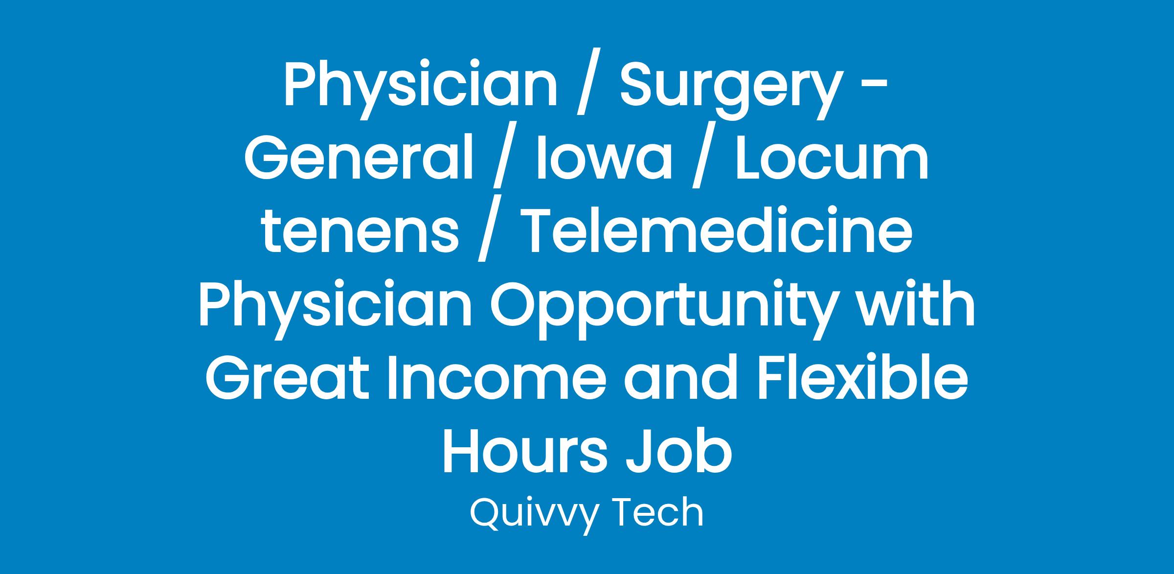 Physician / Surgery - General / Iowa / Locum tenens / Telemedicine Physician Opportunity with Great Income and Flexible Hours Job