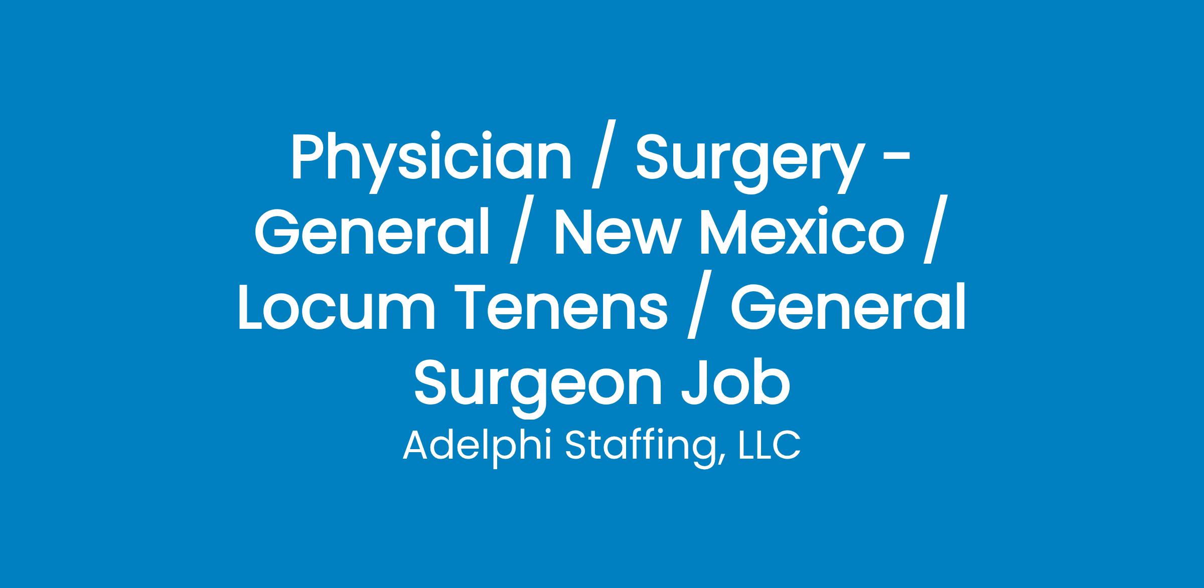 Physician / Surgery - General / New Mexico / Locum Tenens / General Surgeon Job