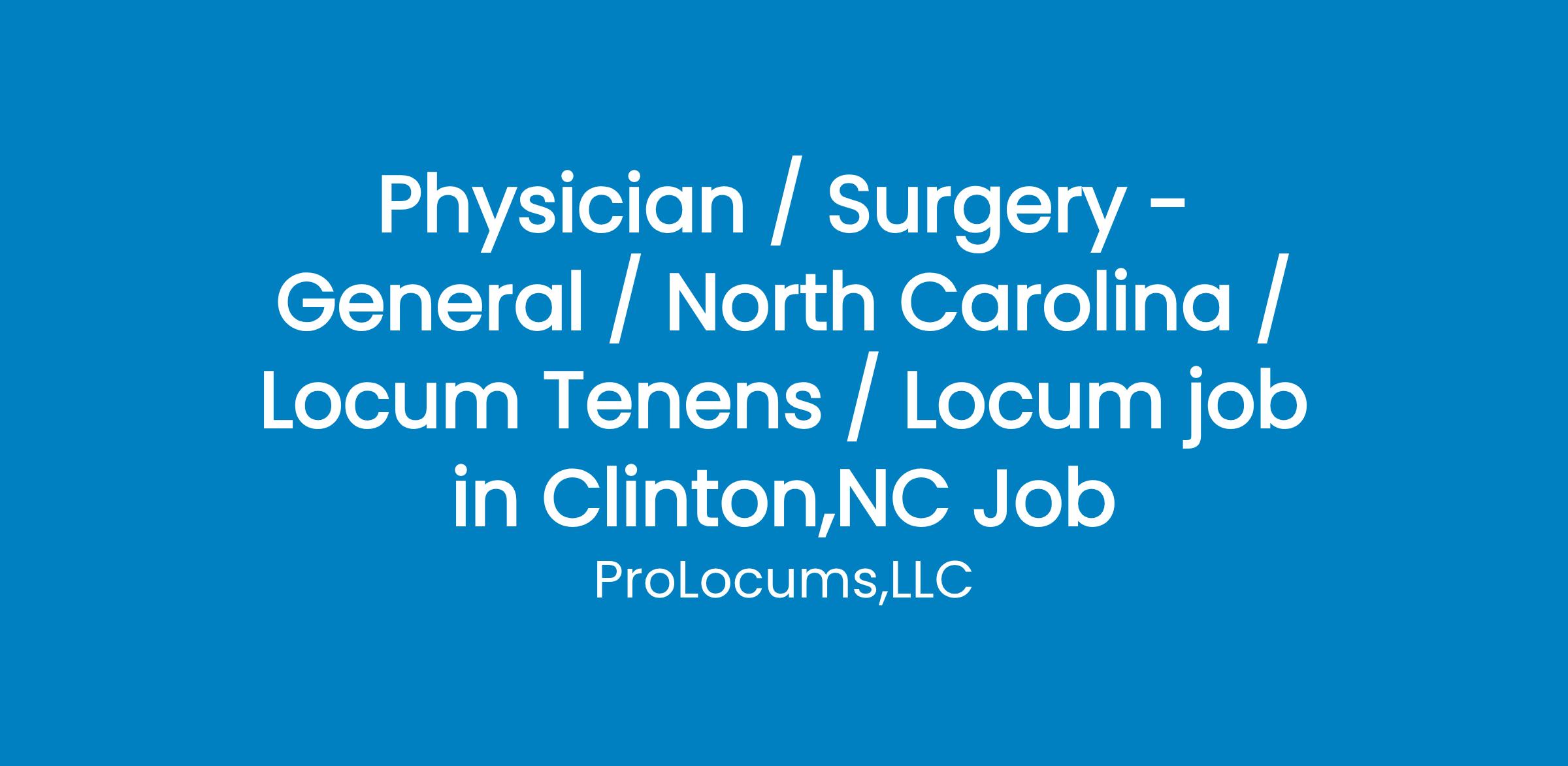 Specialty: Surgery - GeneralStart date: Jul End date: Jul Coverage type:Call OnlySchedule:Dates Needed:Fri, July 22 7A - Mon, July 25 7A24 hour call shifts 7A - 7ABread and Butter GS:Hernia repair, cholecystectomy, breast surgery, "lumps and bumps," abscess drainage, endoscopy (EGD and colonoscopy), appendectomy, small bowel and colon surgery.Call coverage only.Clean background HIGHLY preferred. Board Certification Required.NO RECENT OR OPEN MALPRACTICE CASESMalpractice or disciplinary information must be included before candidate will be considered.Please include NPI# in candidate bid. Provider must be NC Medicaid credentialed.Must have active NC license and NC DEA (NC address).Surgeon will be provided hospital owned individual apartments onsite. Very nice and clean, cable and Wi-Fi. Any travel expenses will be capped at $500.00. This includes airfare, rental car OR mileage (not both).Call type: physician will be on-call for services, and bylaws require them to be within 20 minutes of the facility. Preferred housing, again, is on-site in hospital-owned apartments.Meditech 6.1 is current EMR. Need 4 - 6 hours gratis daily. We prefer to have gratis hours bulked PLEASE INCLUDE MALPRACTICE INSURANCE IN DAILY RATE PROVIDERS MUST BE CREDENTIALED WITH MEDICARE AND ENROLLED WITH PECOS AS A PROVIDER.Please communicate via email.