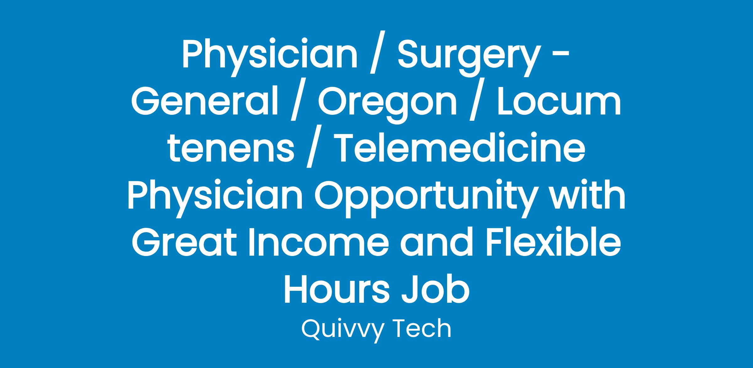 Physician / Surgery - General / Oregon / Locum tenens / Telemedicine Physician Opportunity with Great Income and Flexible Hours Job