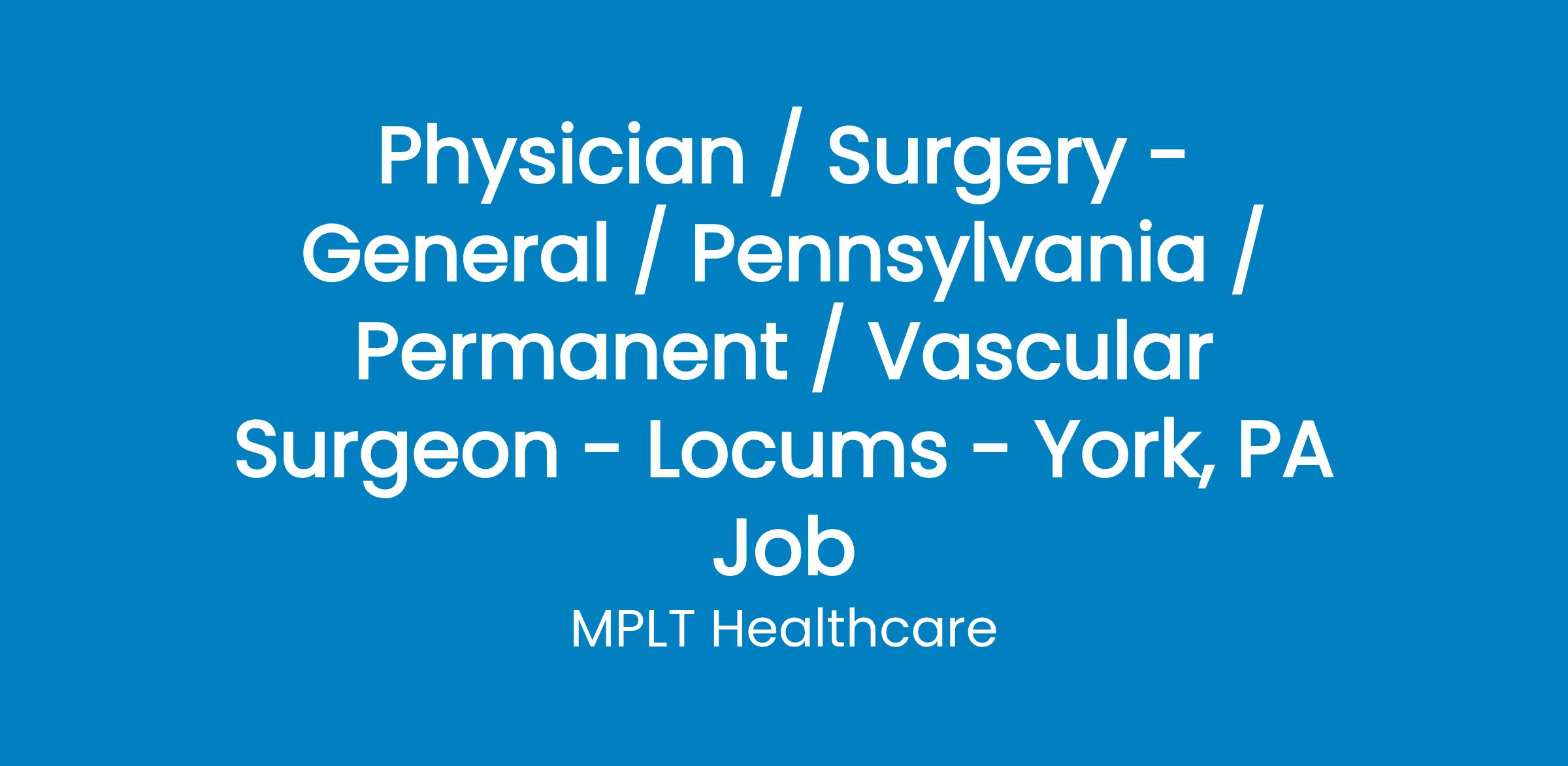 MPLT Healthcare is looking for a physicians who Understand the Urgency, Never Give Up, and Have the Courage to Excel in the forever changing medical industry! We have numerous opportunities for an experienced Vascular Surgeon with highly competitive pay rates in York, PA .