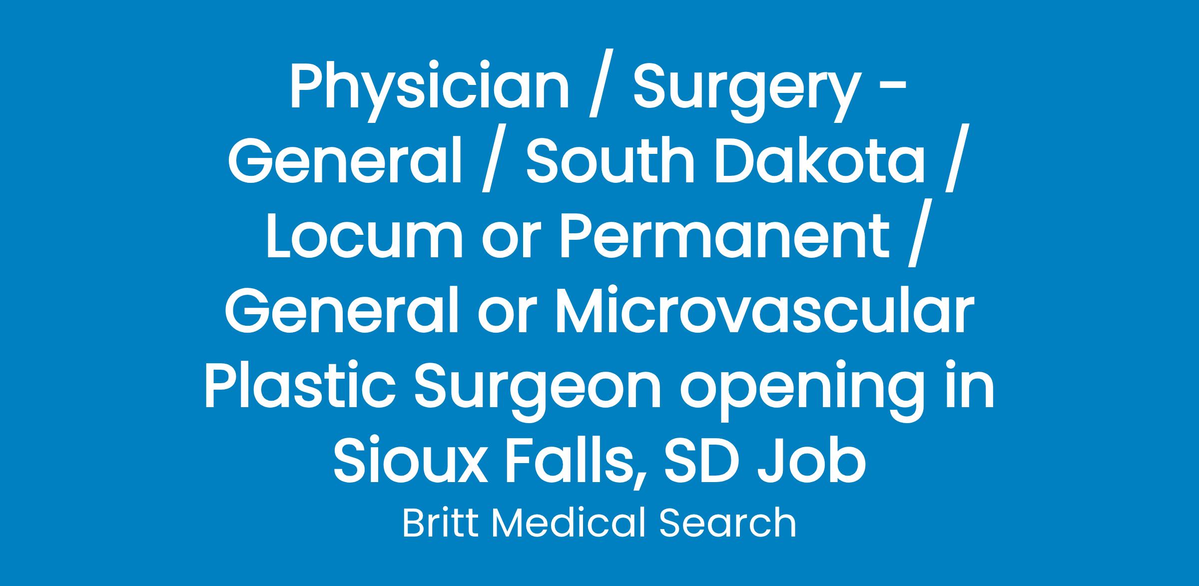 Seeking a full-time board eligible/board certified surgeon for a community practice in Sioux Falls. Becker s Healthcare (2022) ranks South Dakota No. 1 as the best state for physicians to live and work in!