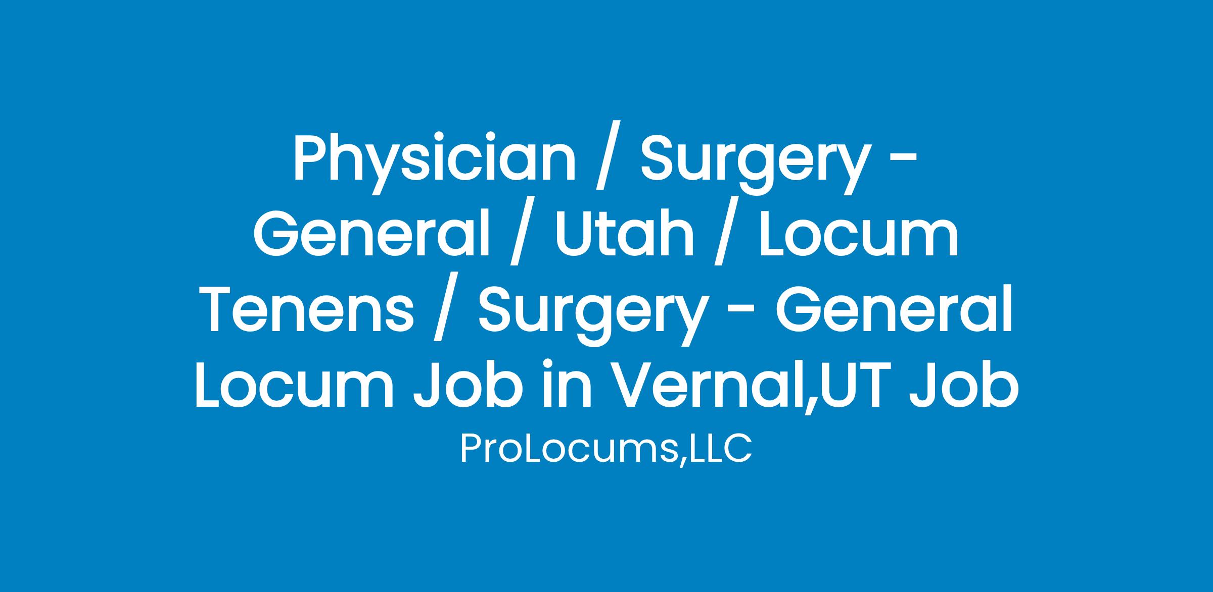 Specialty: Surgery - GeneralStart date: Jul End date: OngoingCoverage type: Scheduled Clinic Hours + CallSchedule: Coverage General SurgeryCurrent Dates Needed:July 31st - Aug 7th ongoing every other weekNotes: 39-bed community hospital in rural northeastern Utah. ED volume is about 12,000 per yearLong term permanent search