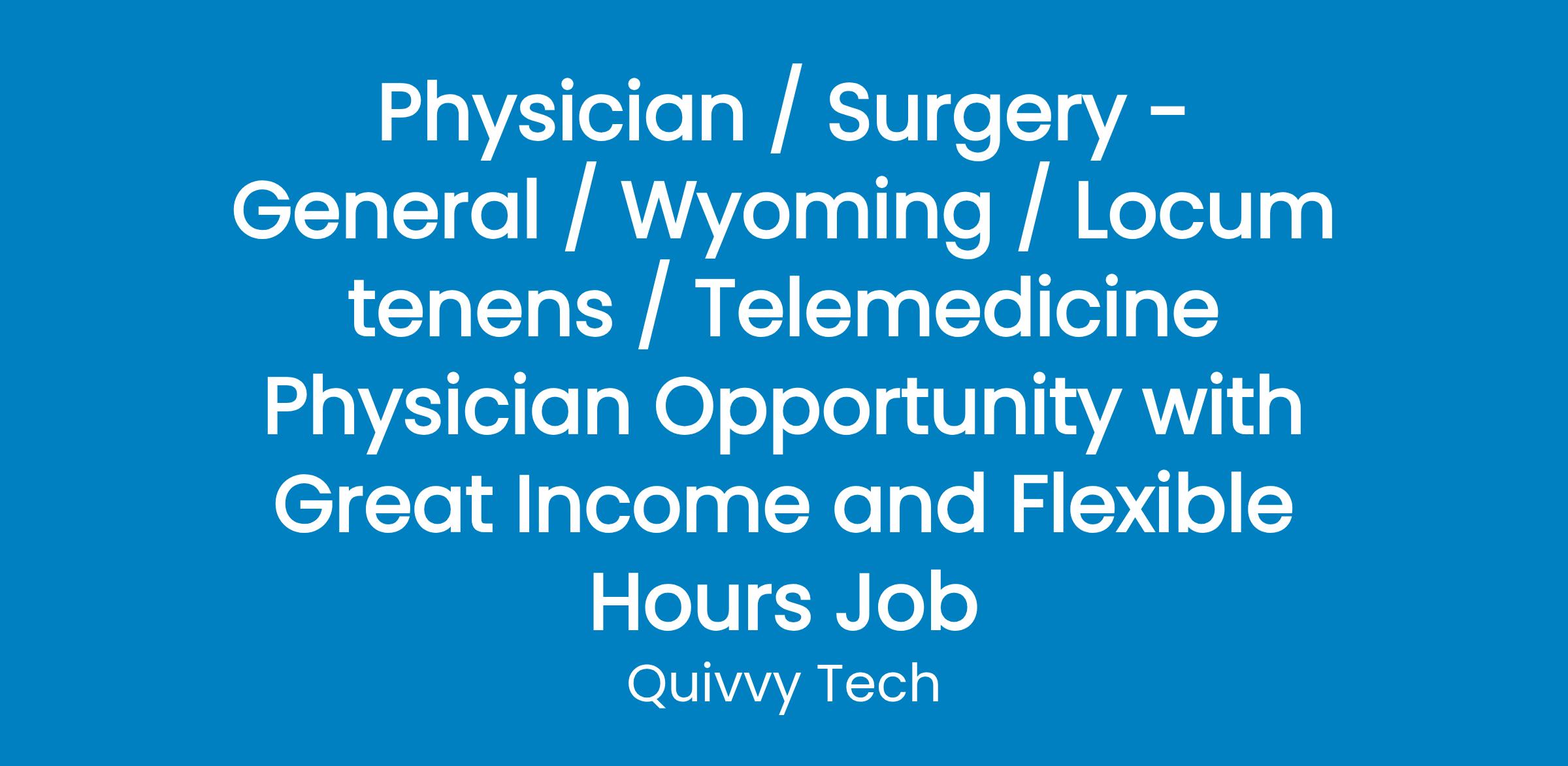 Physician / Surgery - General / Wyoming / Locum tenens / Telemedicine Physician Opportunity with Great Income and Flexible Hours Job