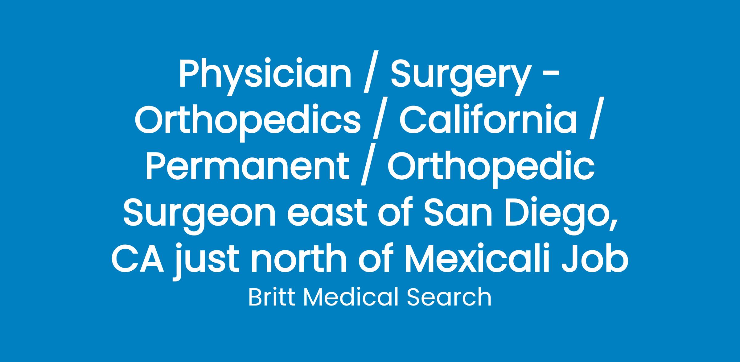 Seeking BE/BC Orthopedic Surgeon to join fantastic team in southern CA, focusing on joints including anterior hips.