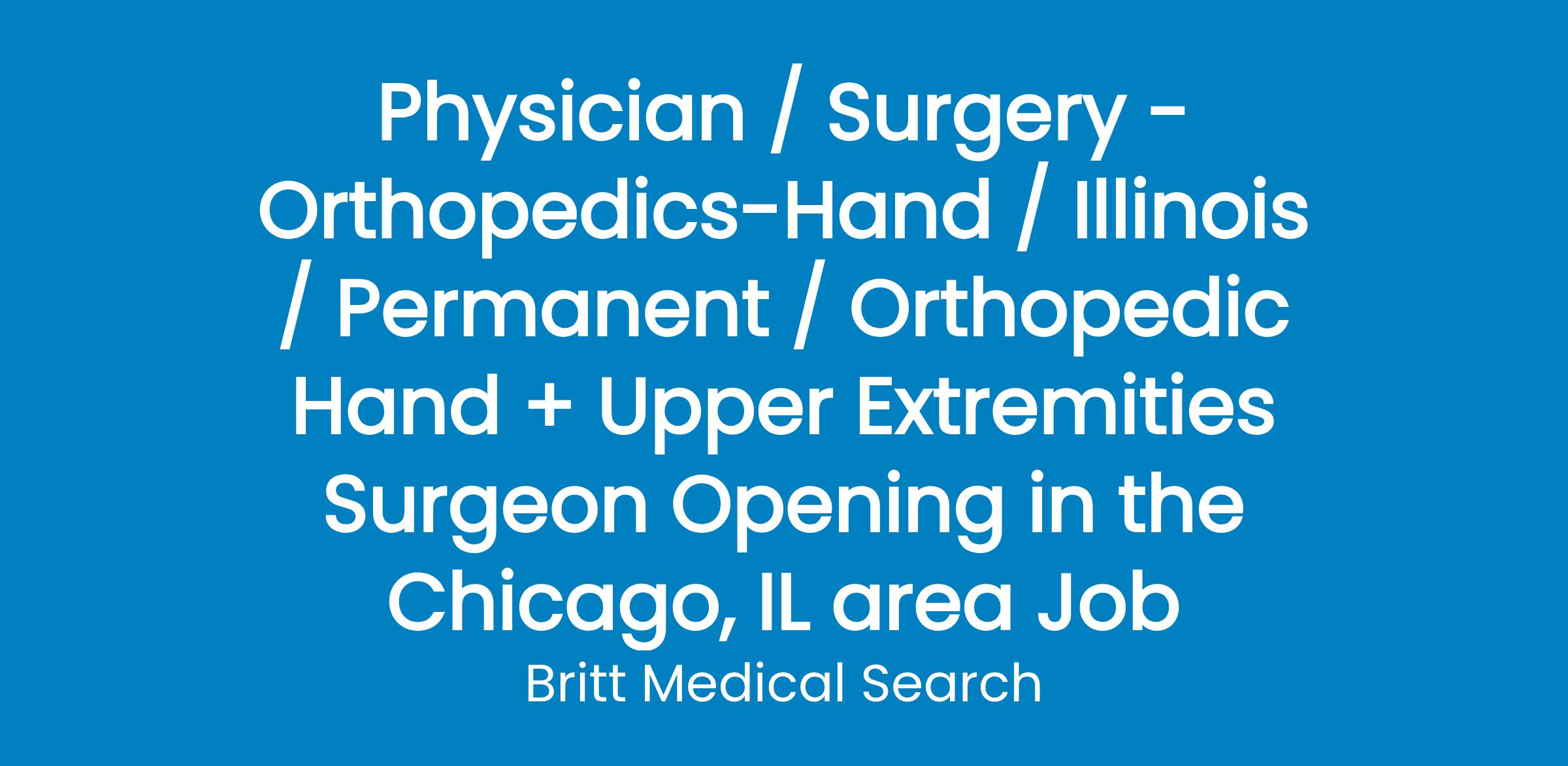 Seeking a full-time Board-Certified Orthopedic Surgeon with interests in Hand & Upper Extremities to join our well-established department in the Chicago area.