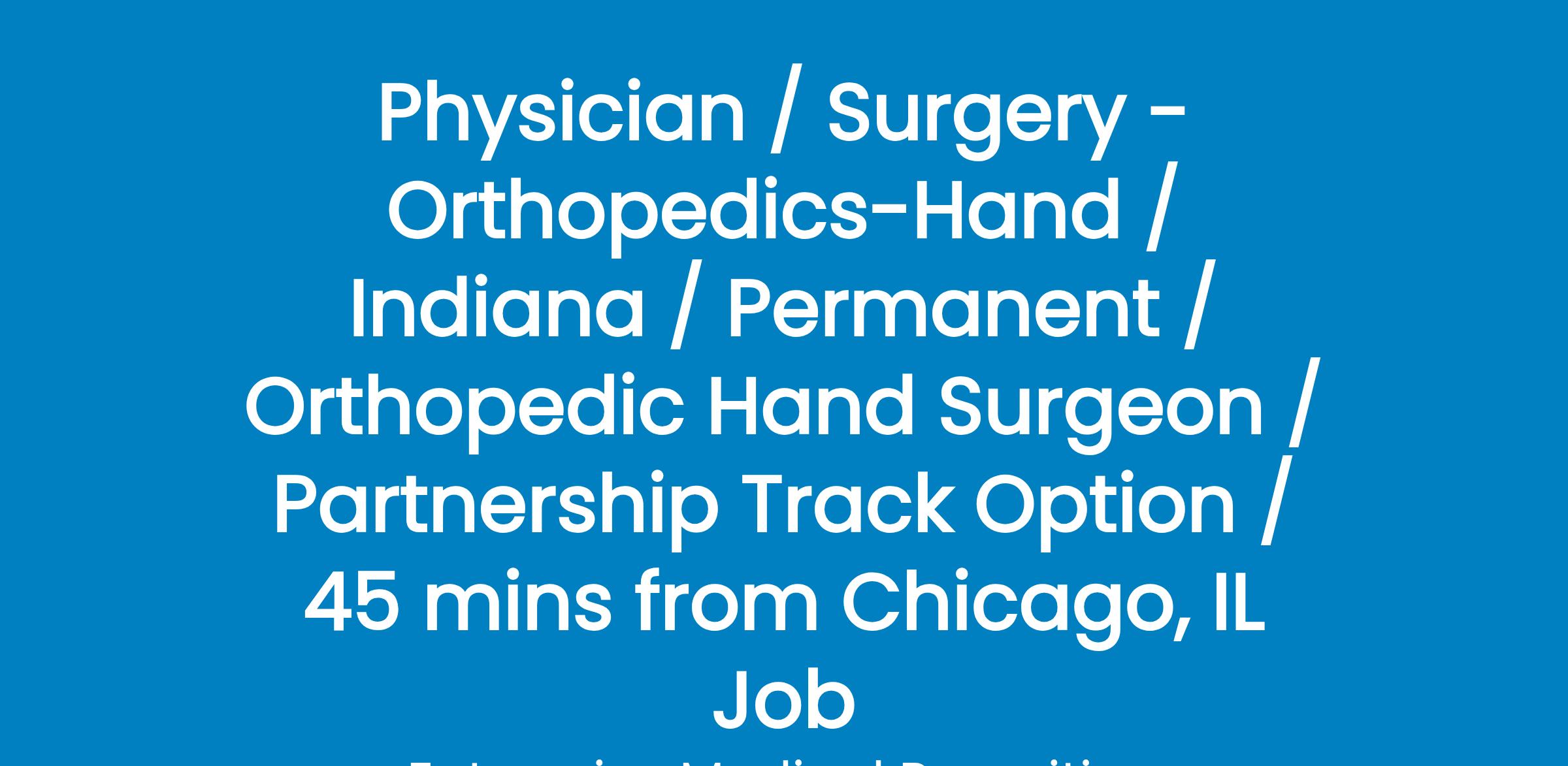 A well-established system in northwest Indiana's Lake County is adding a full-time BC/BE Orthopedic Hand Surgeon to their growing team.
